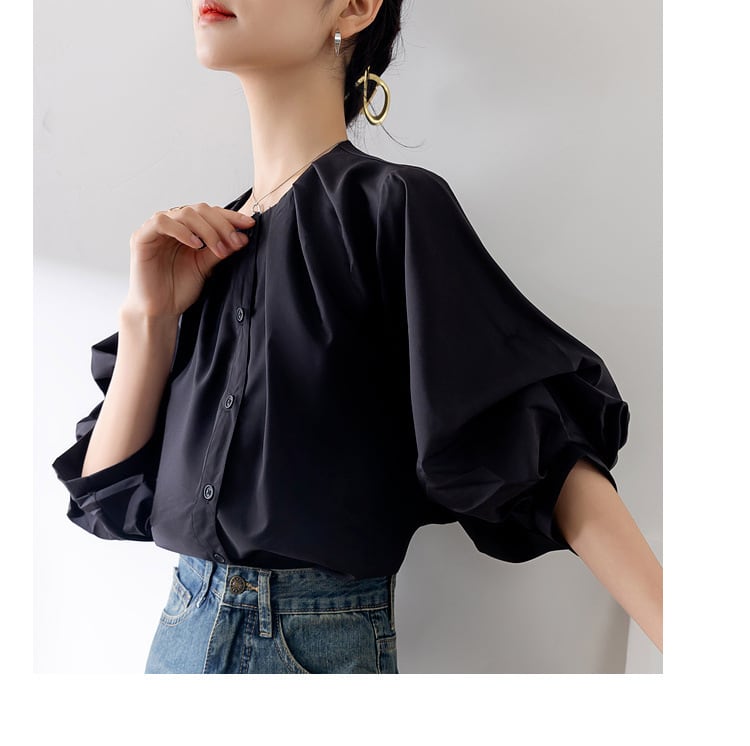 ボリューミーなお袖が大人可愛いブラウス。