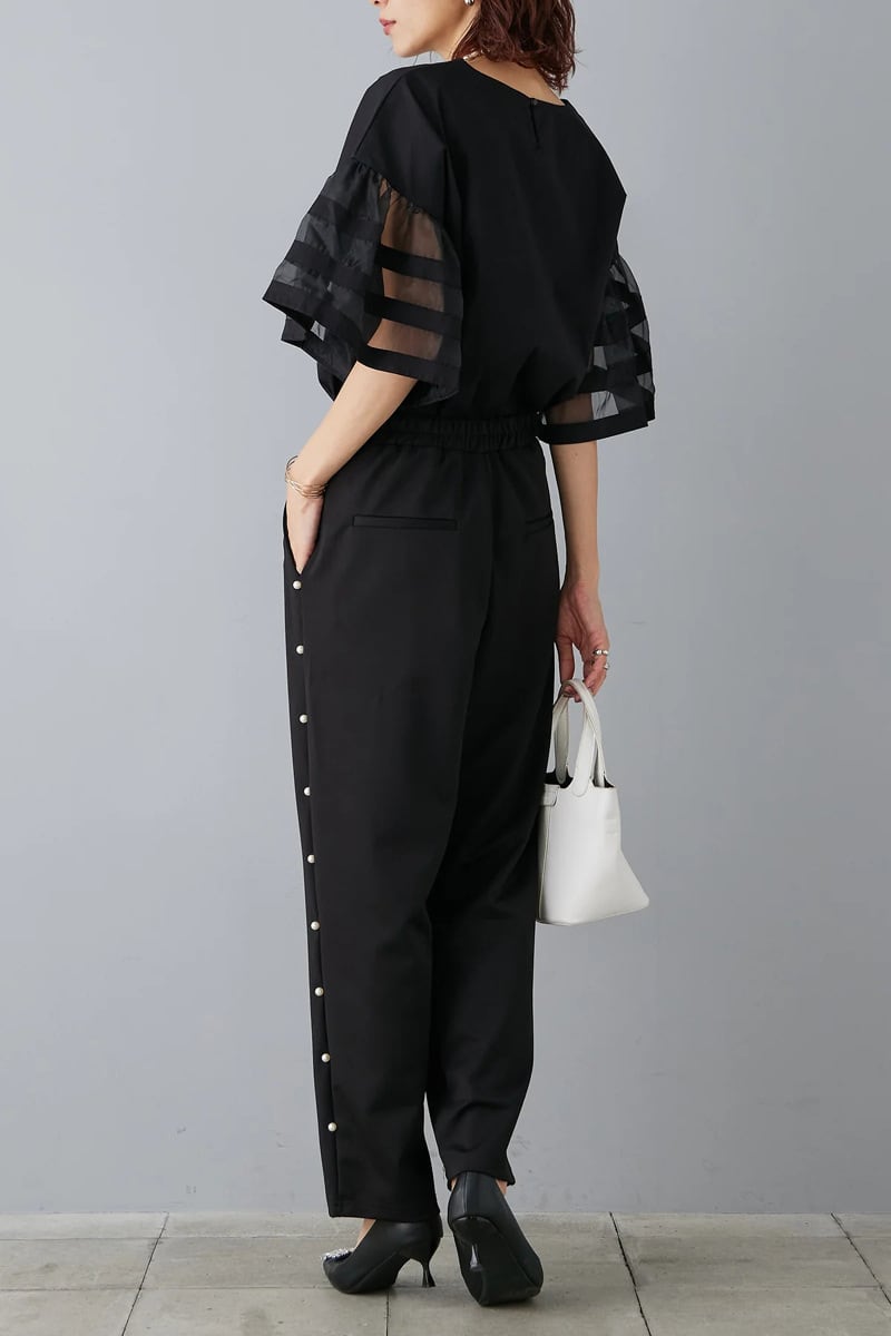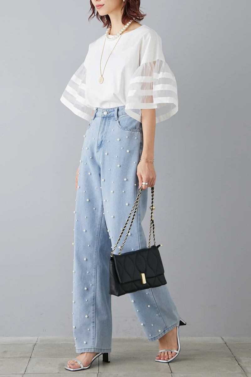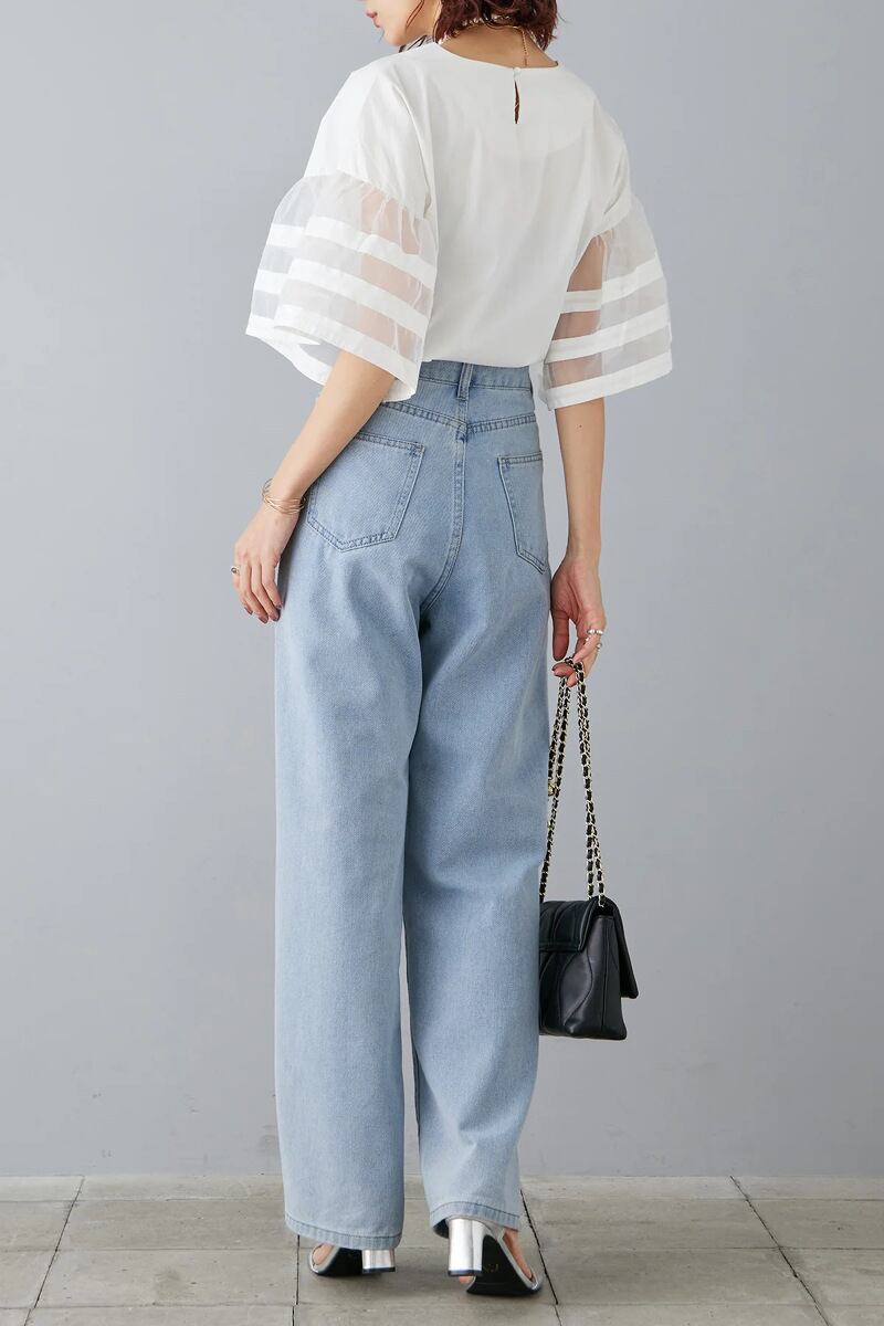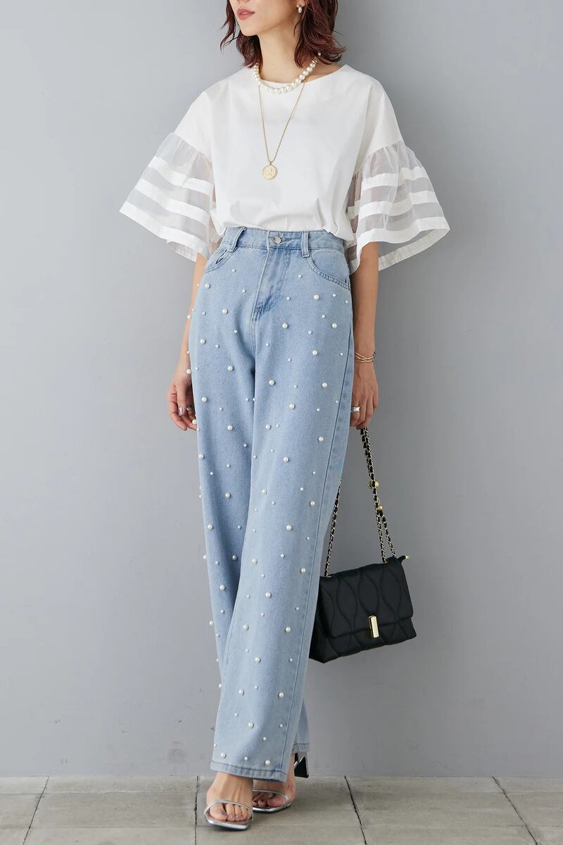 カットソー+デニムとカジュアルパンツ、パターンが選べるセットアップ。