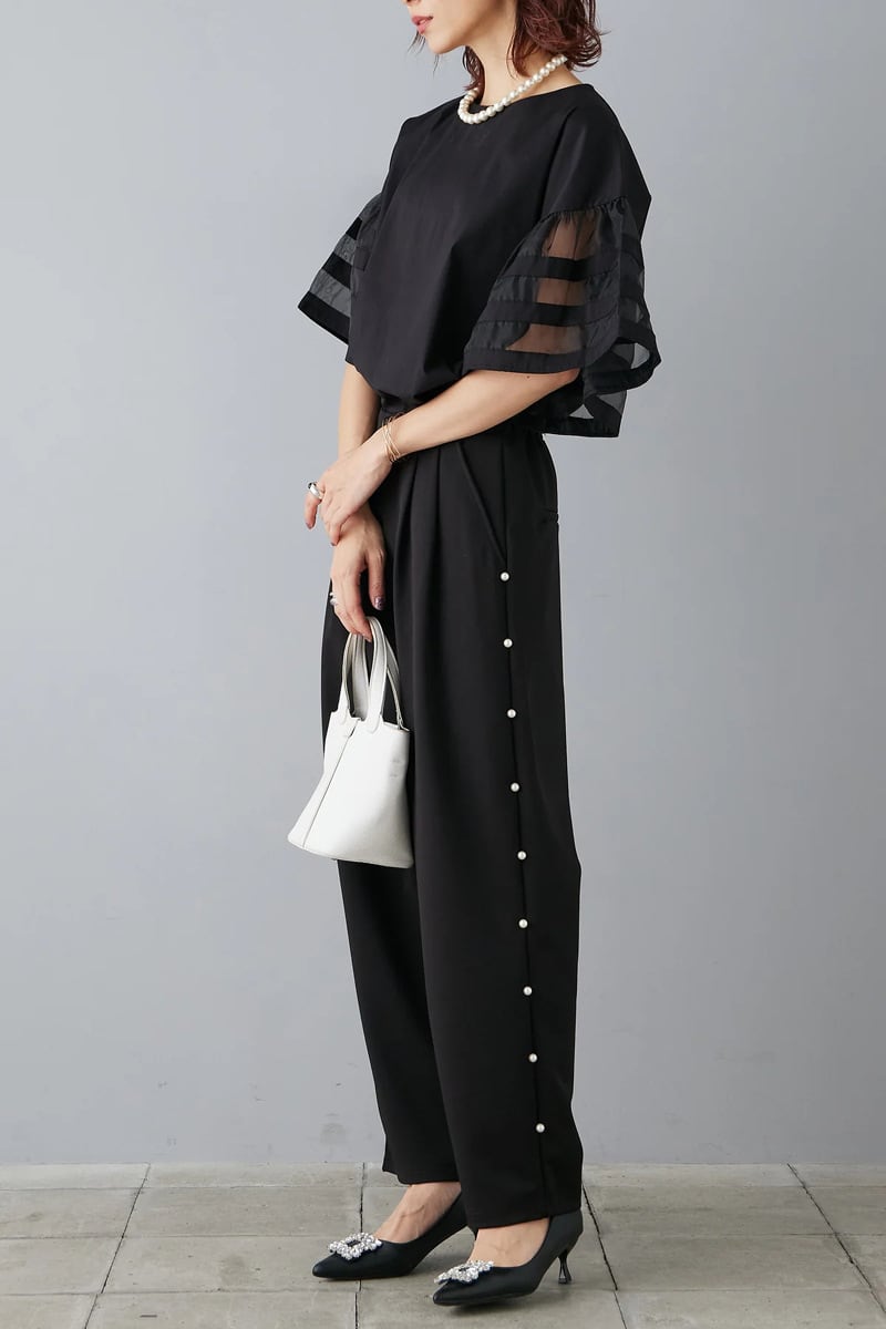 【セットアップ】 セットアップ レディース おしゃれ ママ デニム パンツ トップス カットソー 春 夏 秋 20代 30代 40代 きれいめ 2点セット ホワイト 白 ブラック 黒 S M L XL