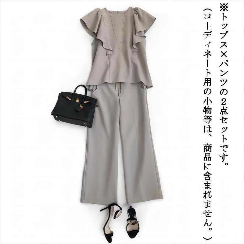【セットアップ】 セットアップ レディース おしゃれ ママ パンツ トップス フリル ブラウス 春 夏 秋 20代 30代 40代 きれいめ 入園式 卒園式 入学式 卒業式 謝恩会 成人式 同窓会 披露宴 二次会 婚活 女子会 食事会 2点セット ライトグレー S M L