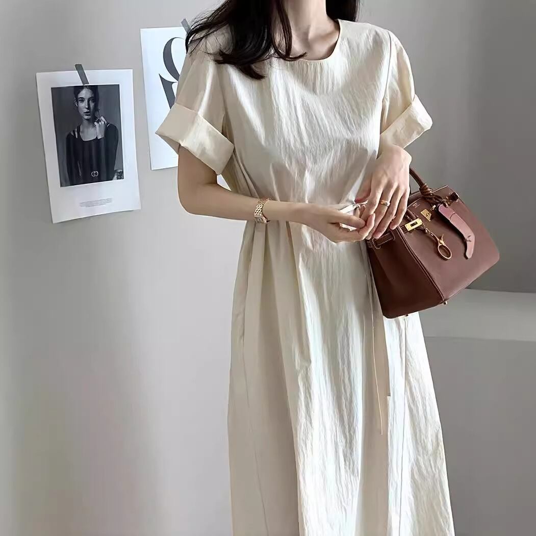 ウエストリボンで腰まわりを引き締め着痩せ効果も。