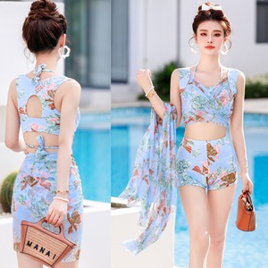 大人エレガントなパレオ付き花柄のビキニ。