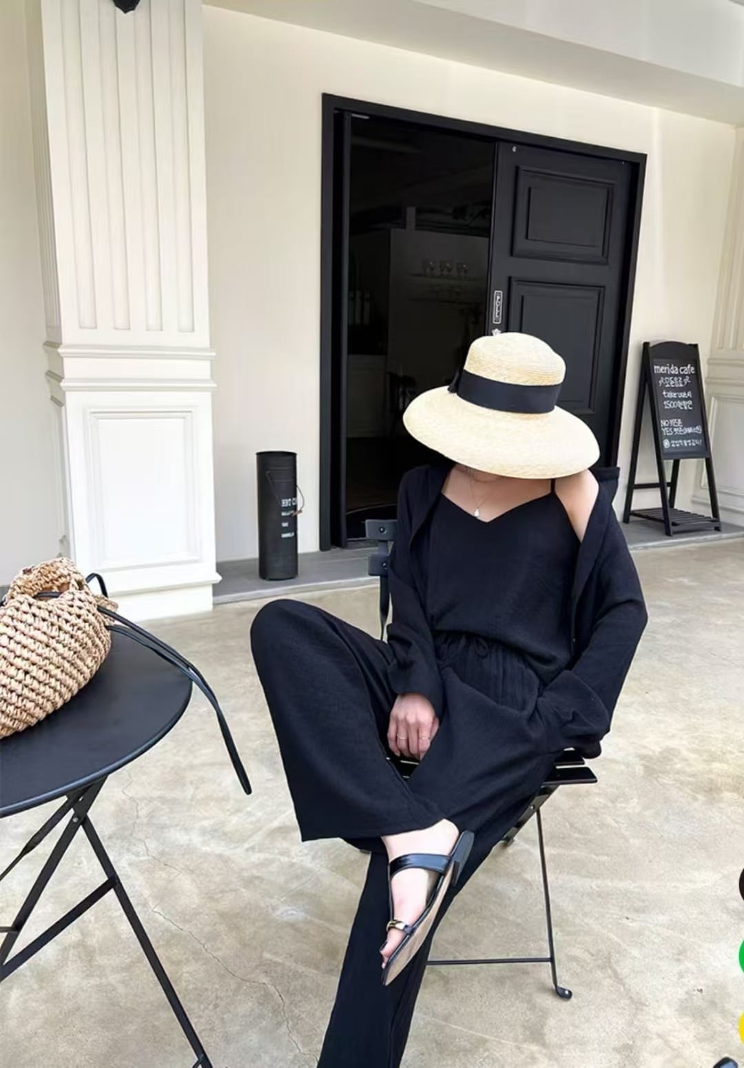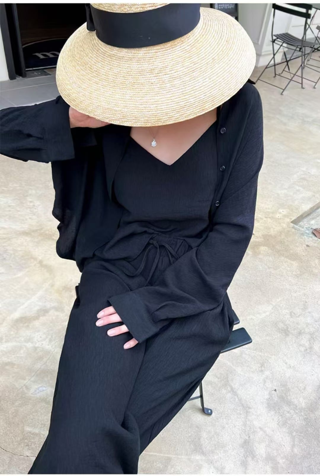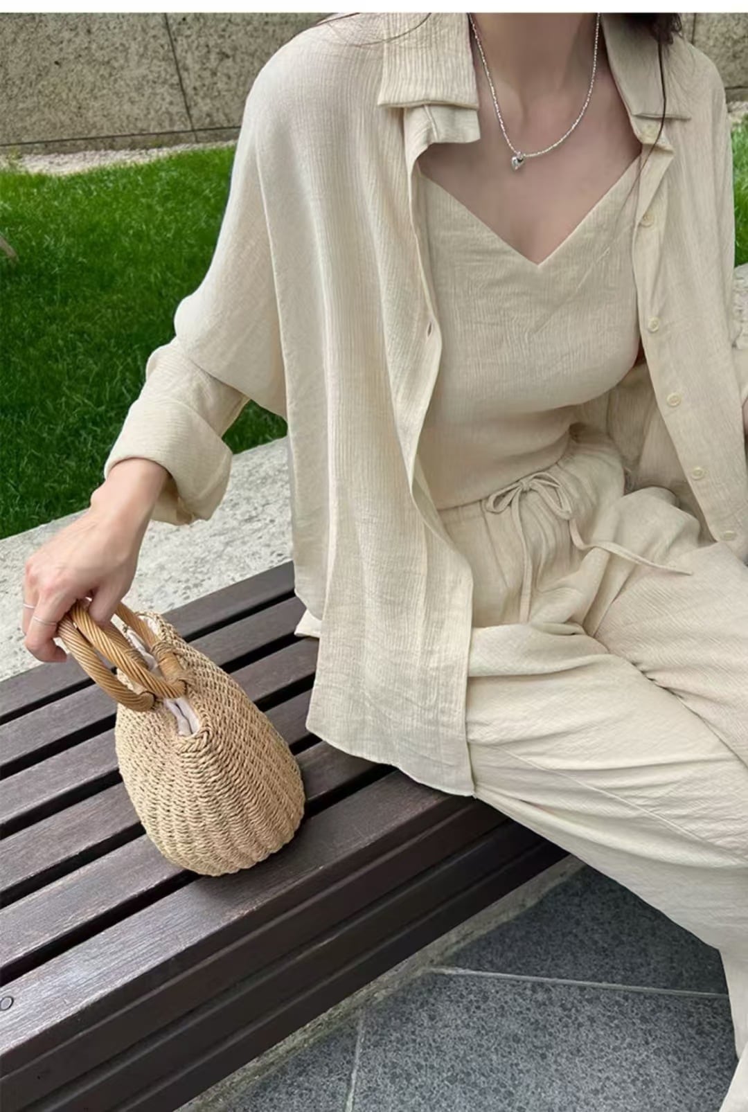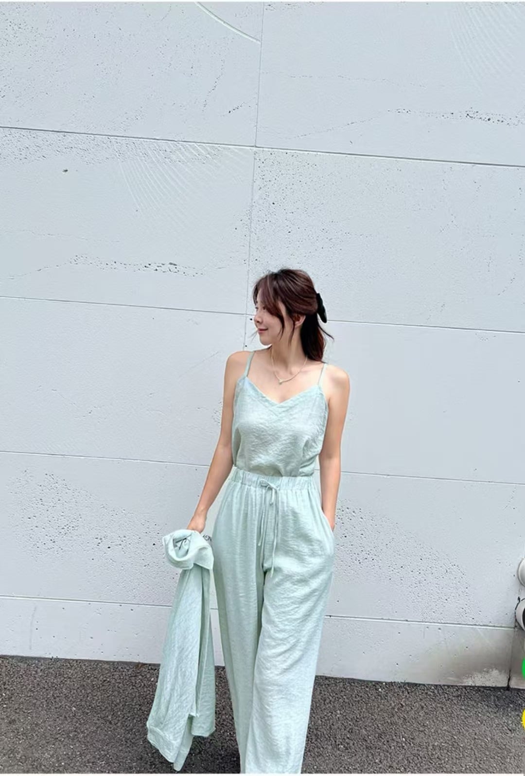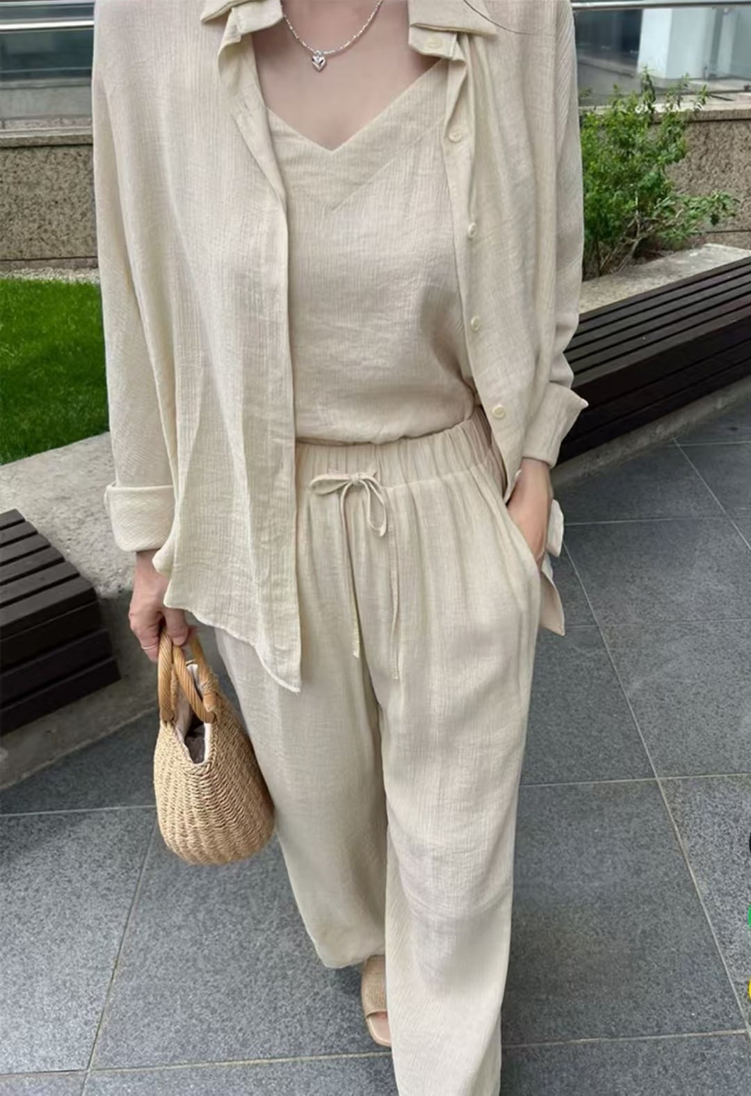 きれいめに着こなせる!シャツ+キャミソール+パンツのセットアップ。