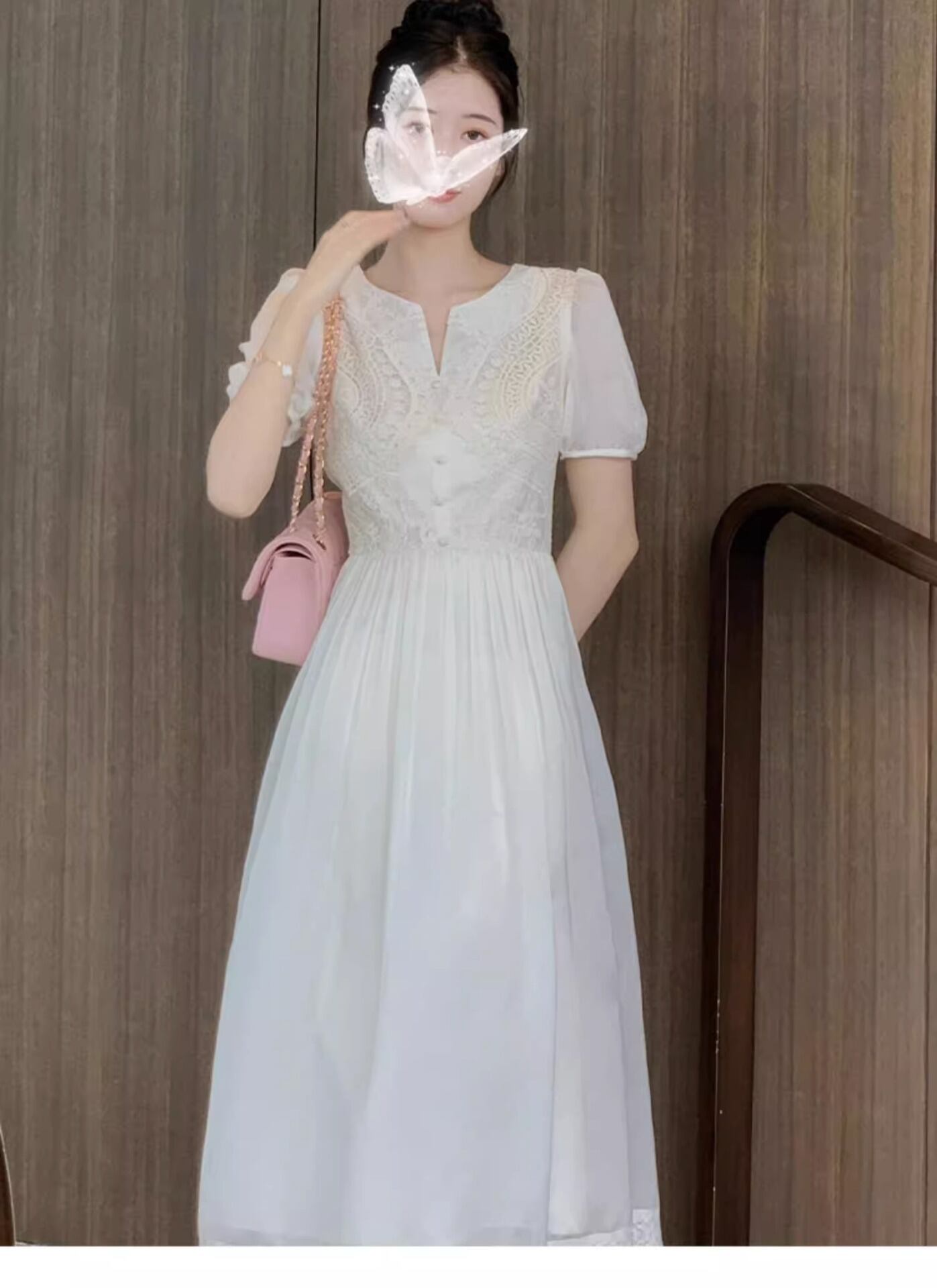 【ワンピース】 ワンピース レディース おしゃれ きれいめ 可愛い 春 夏 秋 ワンピース 20代 30代 40代 ロング ワンピース 韓国 ワンピース 袖あり ホワイト 白 S M L XL