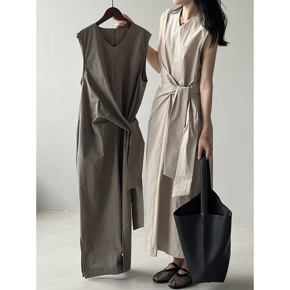 【ワンピース】 ワンピース レディース おしゃれ きれいめ 可愛い 春 夏 秋 ワンピース 20代 30代 40代 ロング ワンピース 韓国 ワンピース 袖なし ベージュ グレーグリーン 緑 M L
