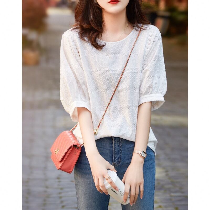大人可愛いバルーンスリーブのシンプルなブラウス。