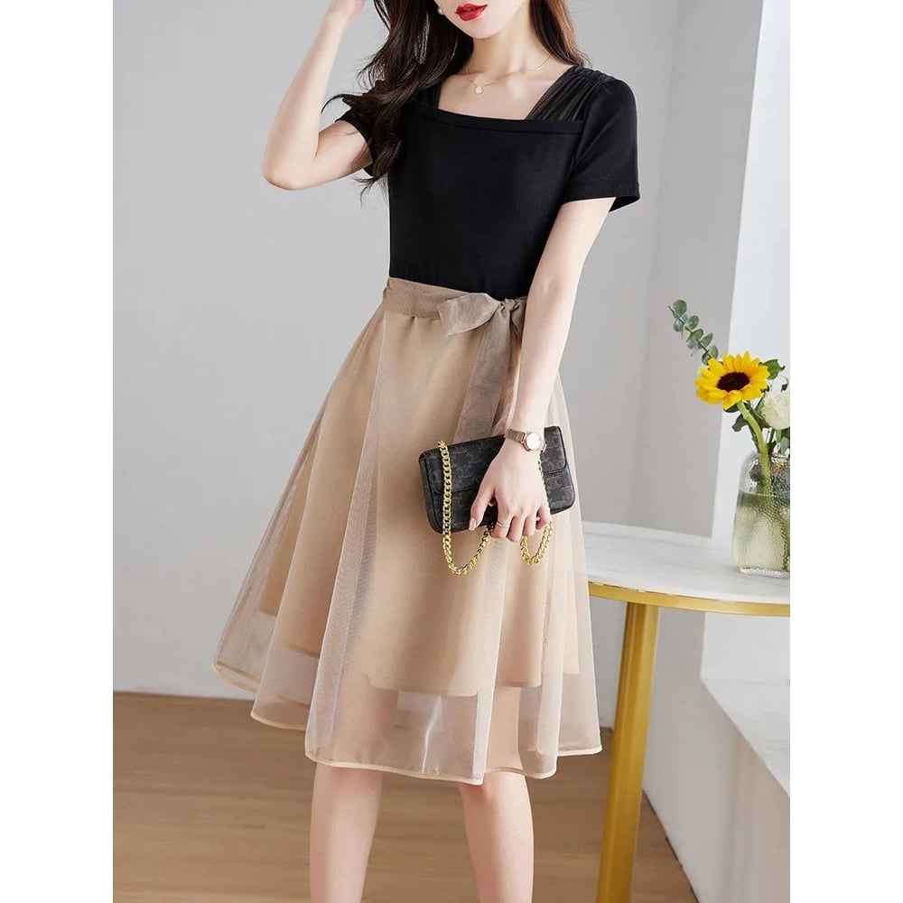 【パーティードレス】大きいサイズ パーティードレス 結婚式 お呼ばれ ドレス 結婚式のお呼ばれ お呼ばれ ワンピース 20代 30代 40代 膝下 ひざ下 ワンピ-ス フォーマルドレス 卒業式 謝恩会 成人式 同窓会 袖あり ドレス 体型カバー フォーマルドレス ドレス 二次会 パーティー お呼ばれ フォーマル フォーマルワンピース シンプル おしゃれ バイカラー L XL 2XL 3XL