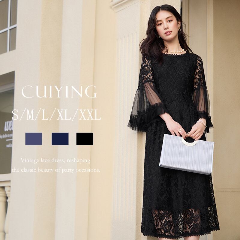 大人エレガントな総レースのワンピースドレス。