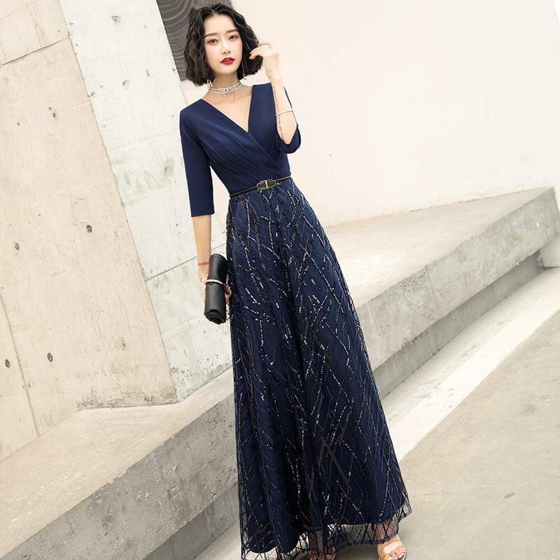 【パーティードレス】 大きいサイズ パーティードレス 結婚式 お呼ばれ ドレス 結婚式のお呼ばれ お呼ばれ ワンピース 20代 30代 40代 膝下 ひざ下 ロング マキシ ワンピ-ス フォーマルドレス 卒業式 謝恩会 成人式 同窓会 袖あり ドレス 体型カバー フォーマルドレス ドレス 二次会 パーティー お呼ばれ フォーマル フォーマルワンピース シンプル おしゃれ ネイビー 青 S M L XL 2XL 3XL