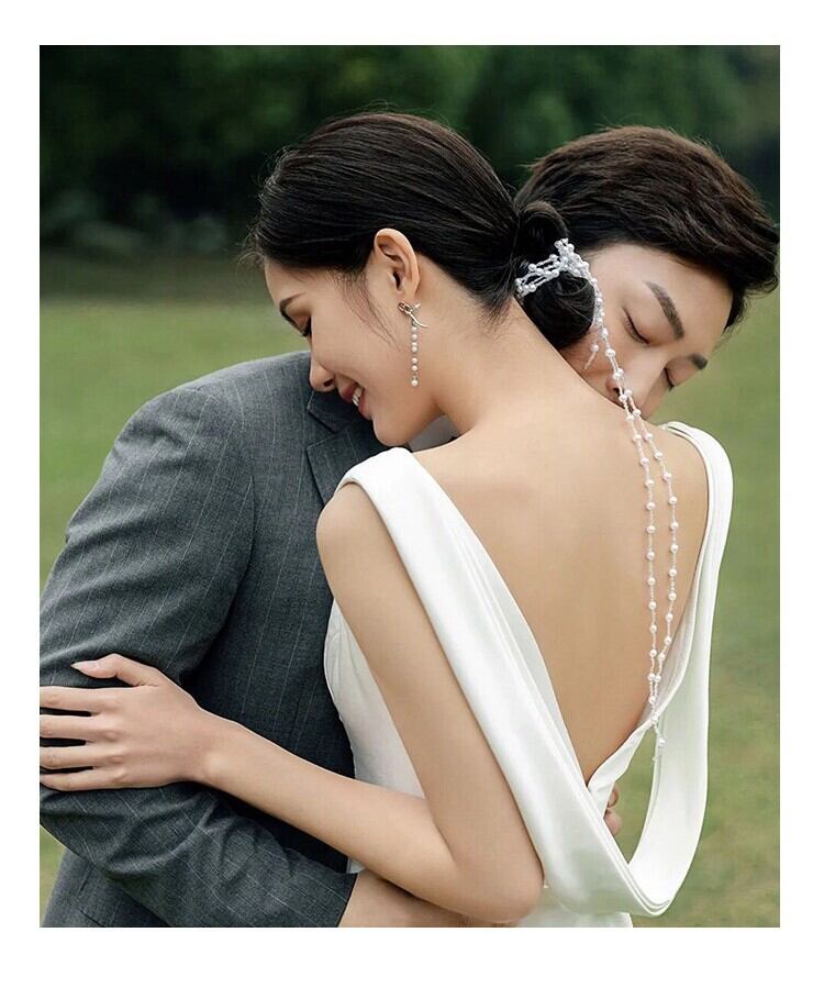 オープンバックな後ろ姿が清楚で厳かなシーンに映える一着。