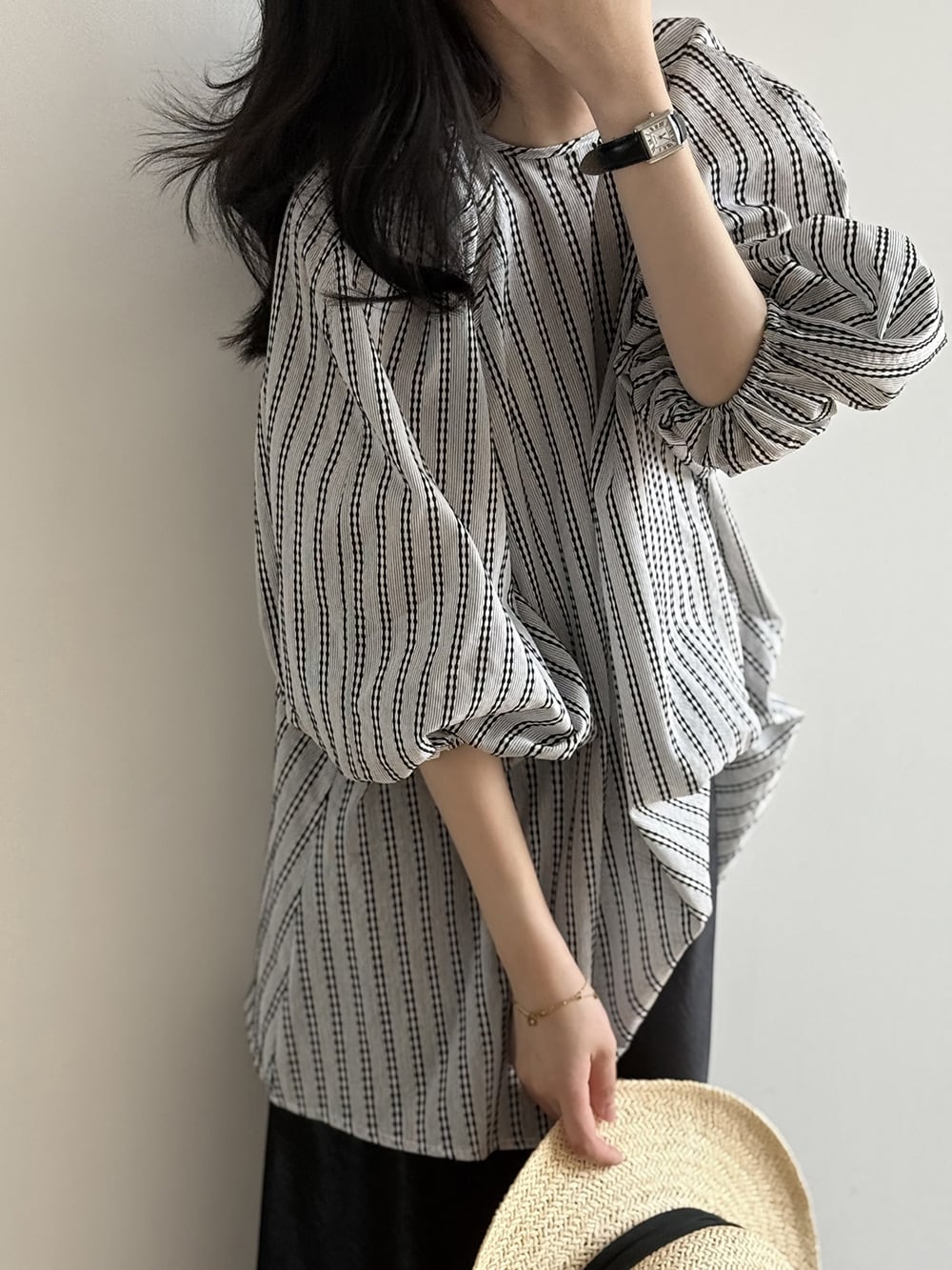 大人可愛いストライプ柄のオーバーサイズブラウス。