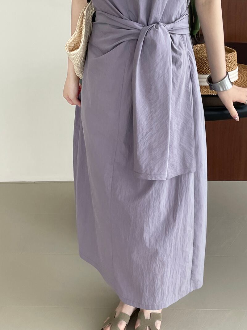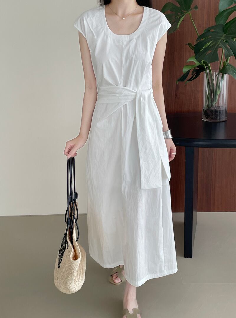 ウエストタイが個性的で可愛らしいワンピース。