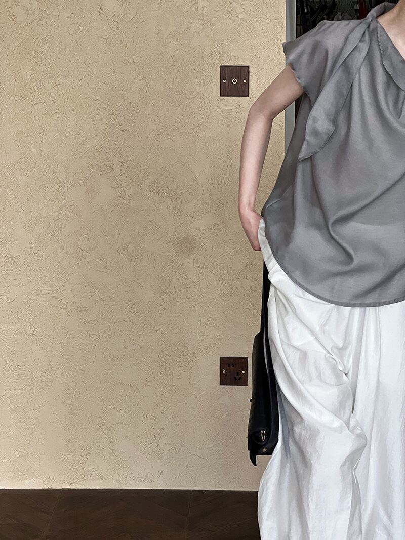 くたっと結わせたデコルテラインがエレガントなブラウス。
