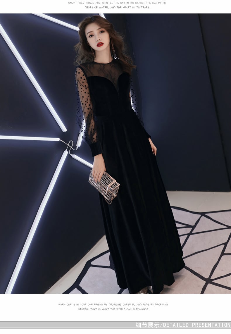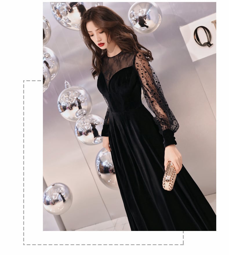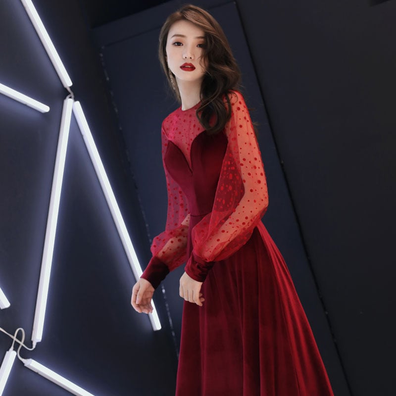 透け感あるドット柄のお袖がエレガントなパーティードレス。