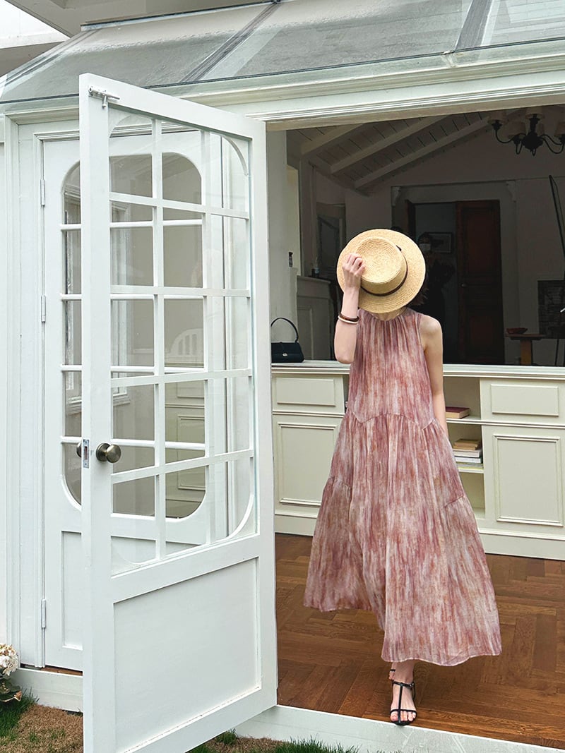 【ワンピース】 ワンピース レディース おしゃれ きれいめ 可愛い 春 夏 秋 ワンピース 20代 30代 40代 ロング ワンピース シフォン 韓国 ワンピース 袖なし 婚活 顔合わせ 食事会 タイダイ ピンク