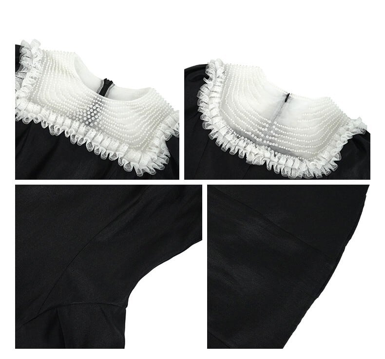 デコルテのパールモチーフが大人可愛いパーティードレス。