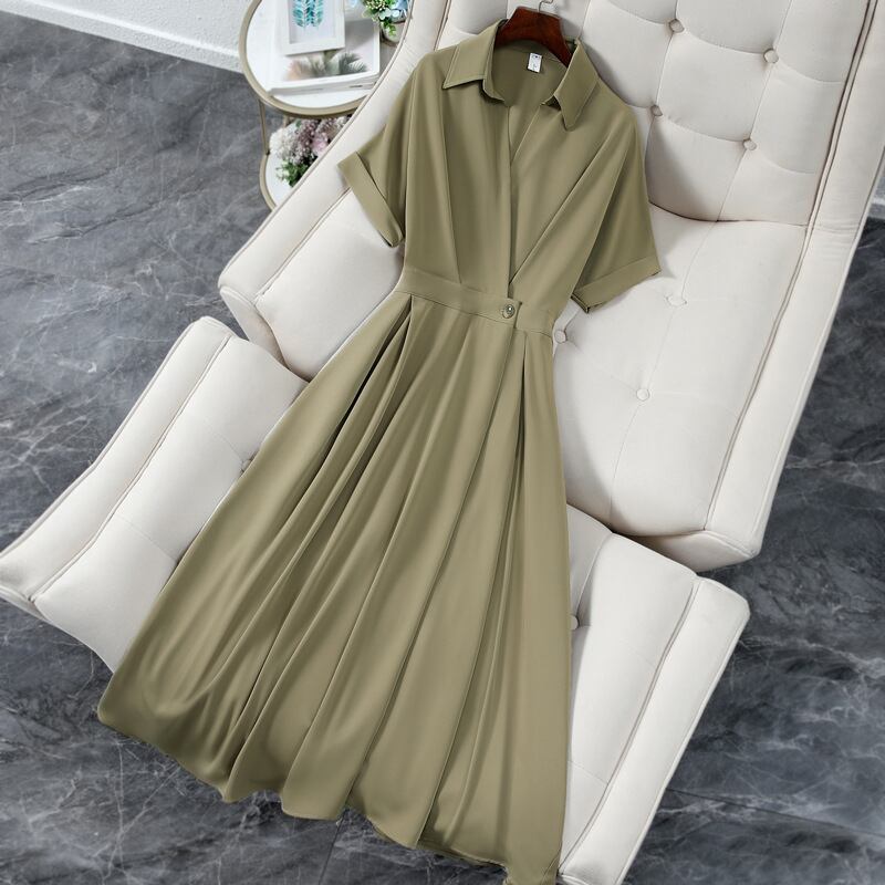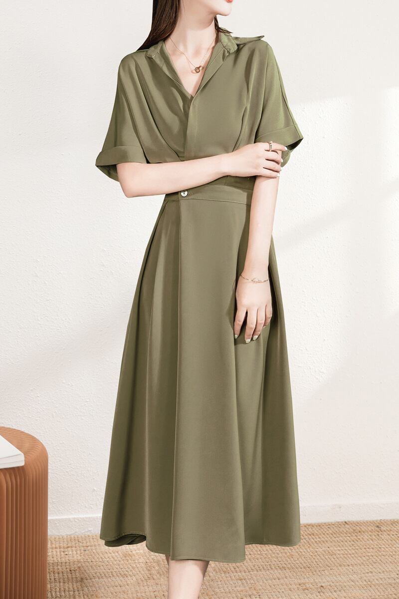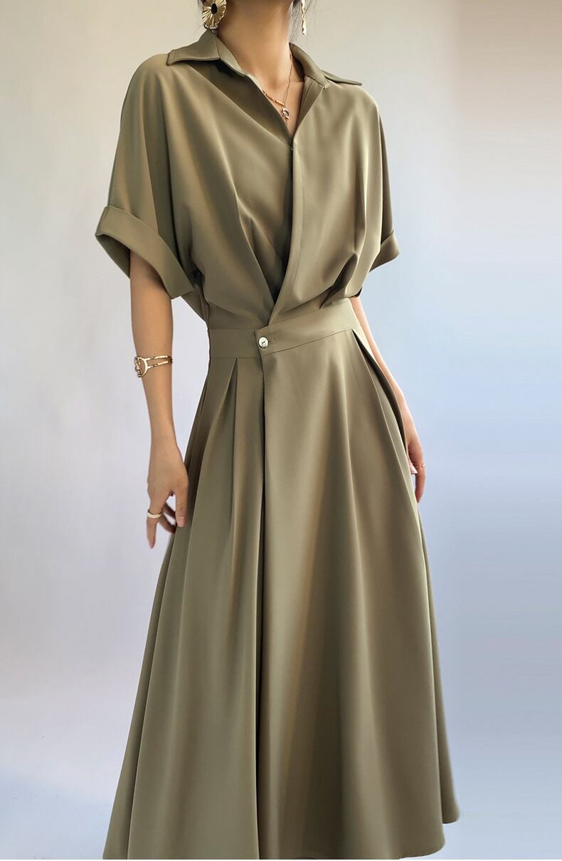 余計な装飾のないシンプルなデザインのワンピースドレス。