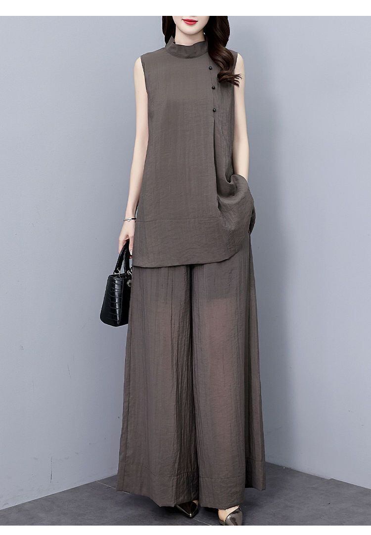 【セットアップ】大きいサイズ セットアップ レディース おしゃれ ママ ワイド パンツ ブラウス トップス 春 夏 秋 20代 30代 40代 入園式 卒園式 入学式 卒業式 謝恩会 成人式 同窓会 披露宴 二次会 婚活 女子会 食事会 顔合わせ 演奏会 発表会 きれいめ セットアップ ブラウン M L XL 2XL 3XL