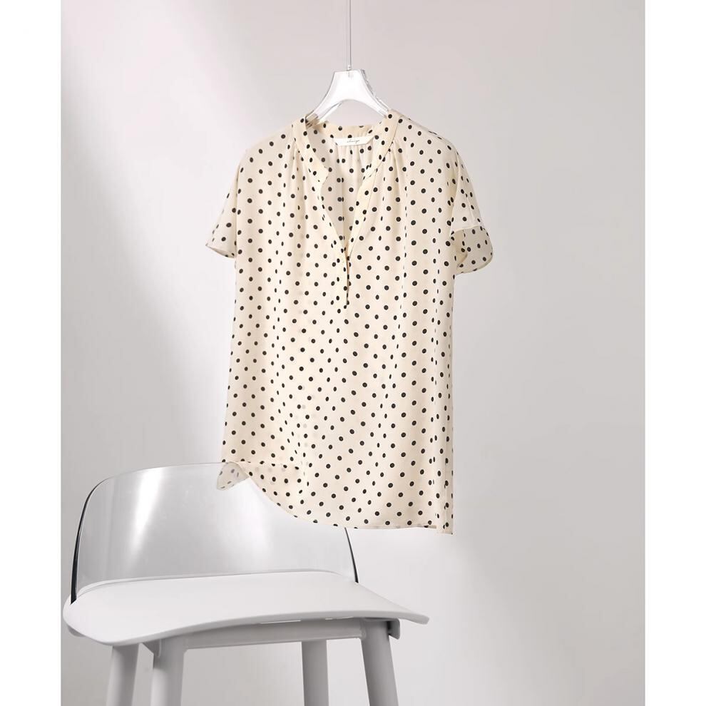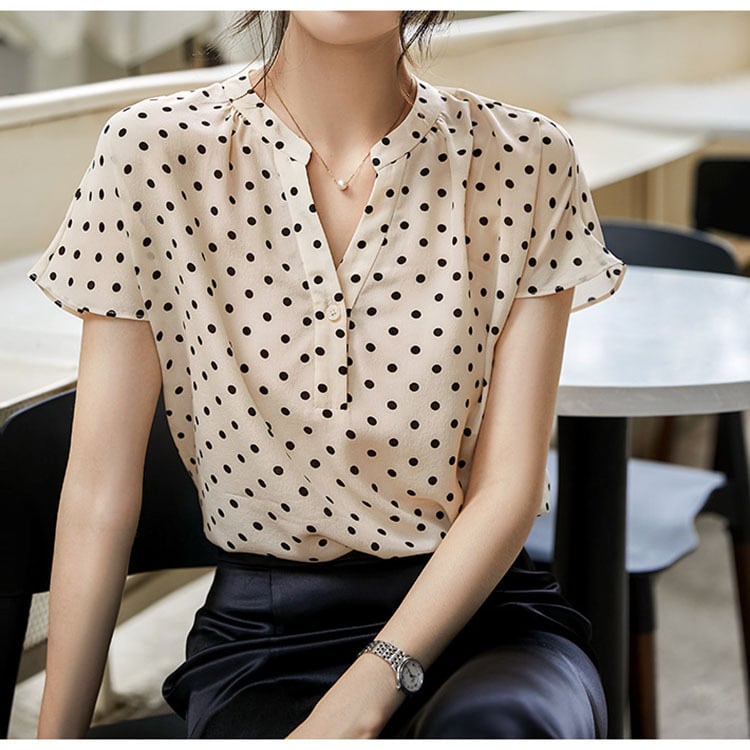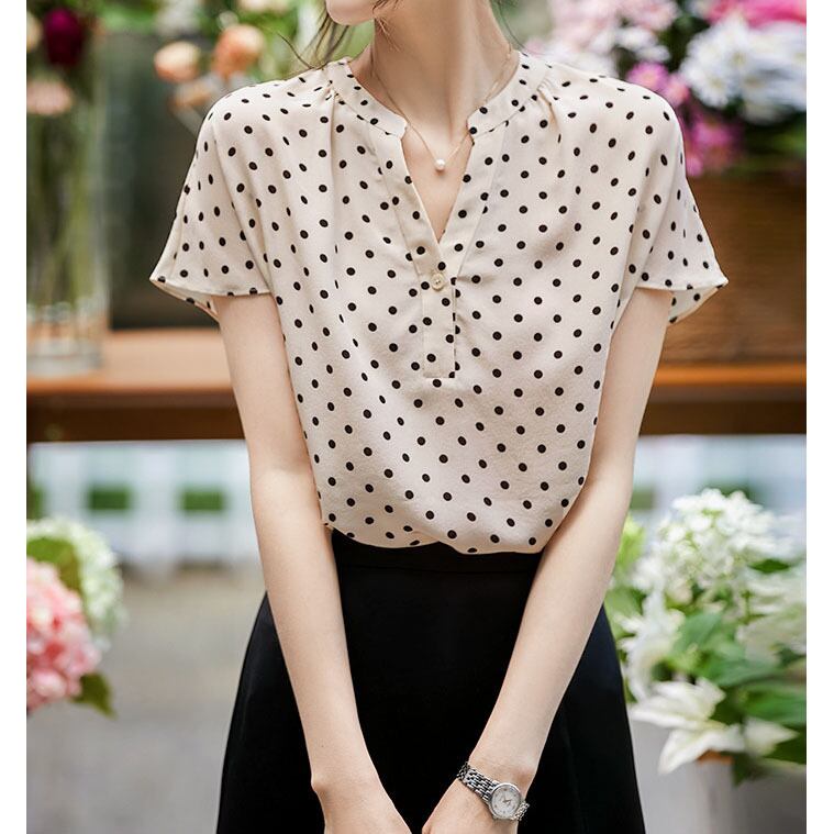 【ブラウス】大きいサイズ ブラウス レディース 大人 可愛い トップス シャツ ブラウス 韓国 ブラウス 春 夏 秋 20代 30代 40代 シンプル シフォン オフィス レディース 半袖 フォーマル 体型カバー きれいめ ドット ベージュ S M L XL 2XL