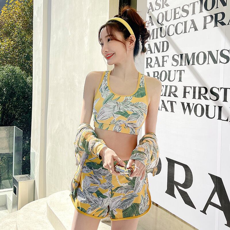 【水着】 大きいサイズ 韓国 水着 タンキニ 体型カバー ラッシュガード レディース 水着 3点セット 可愛い かわいい おしゃれ 20代 30代 40代 ママ 水着 パンツ 海 ビーチ プール リゾート スイムウェア ボタニカル イエロー ブラック 黒 M L XL 2XL