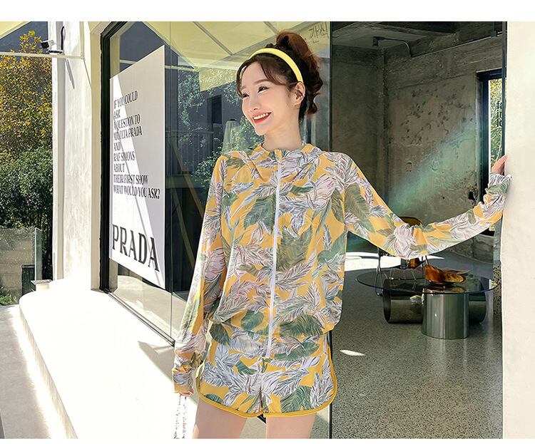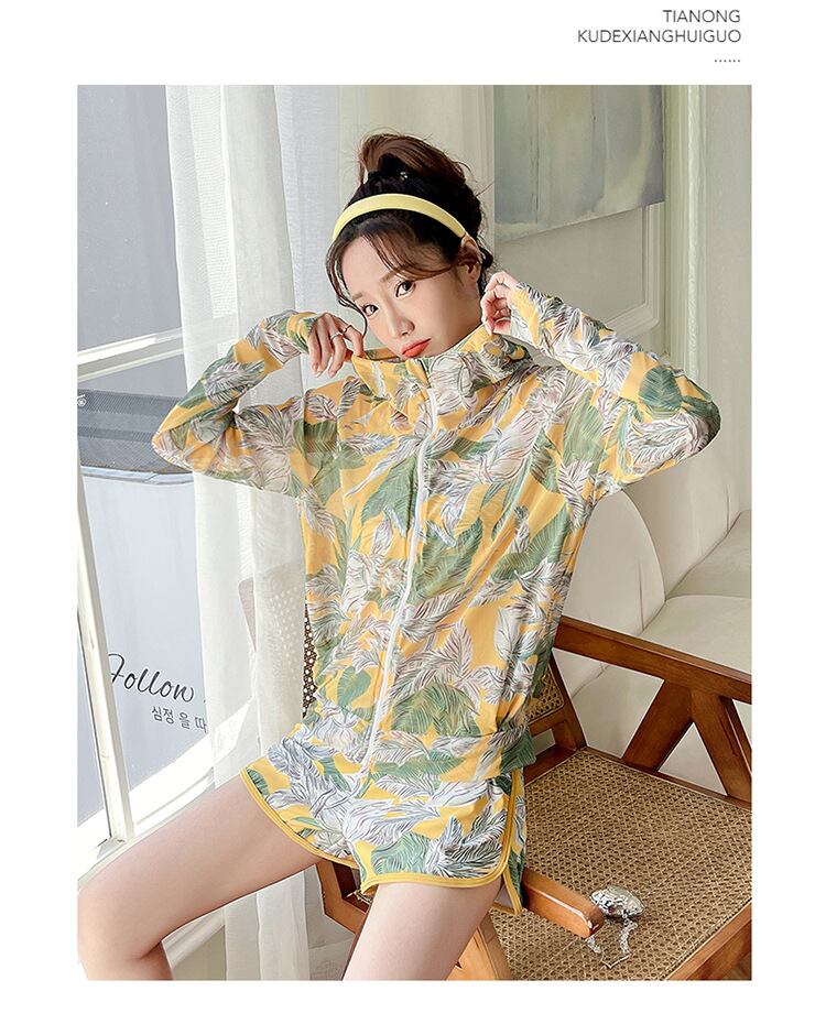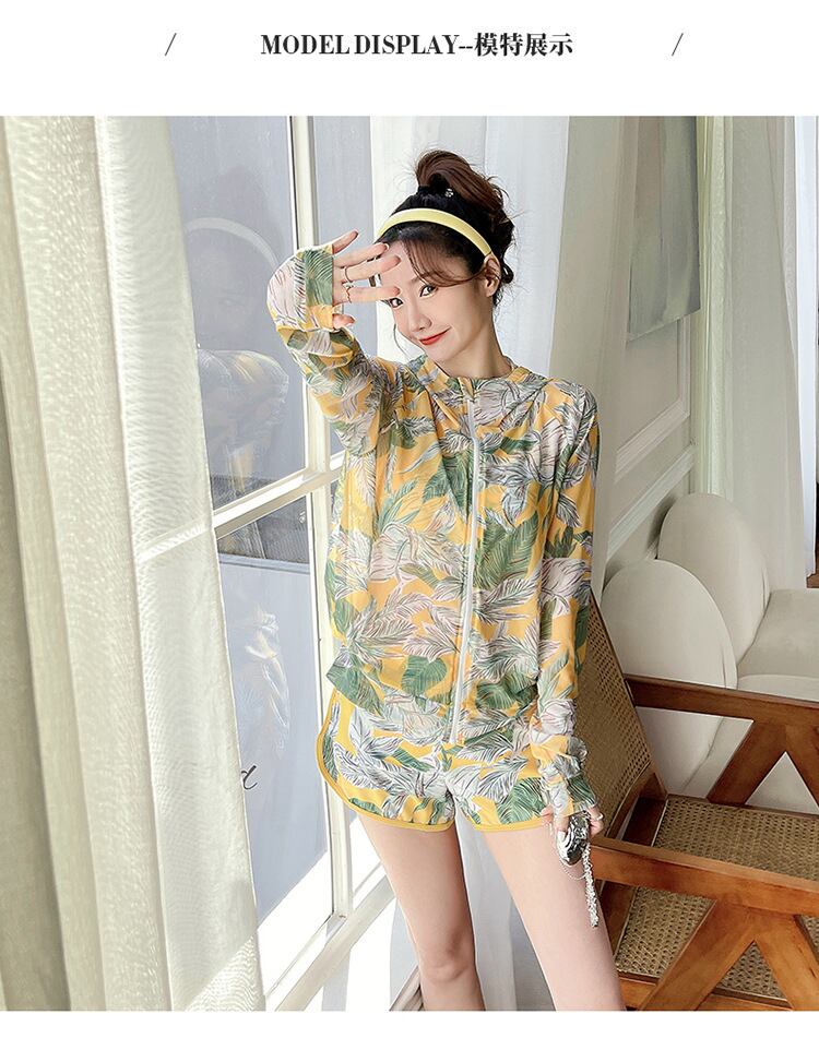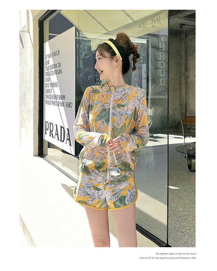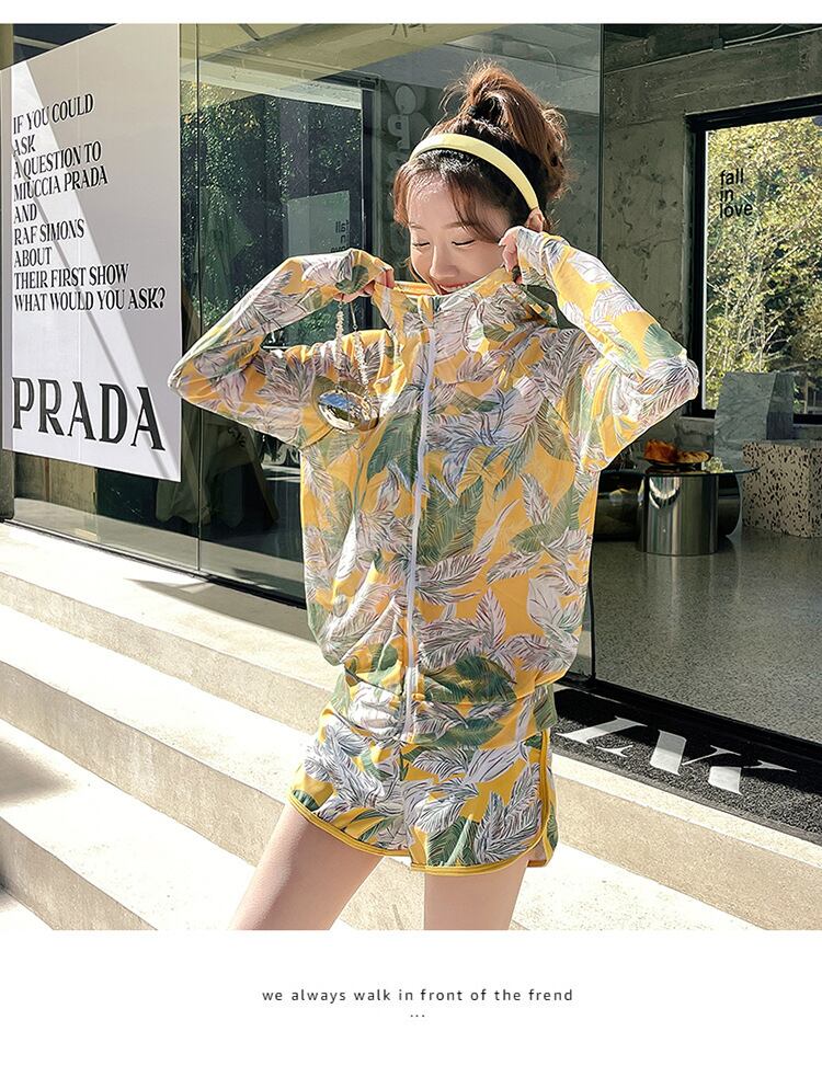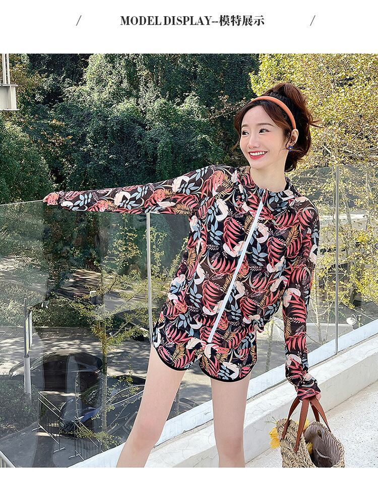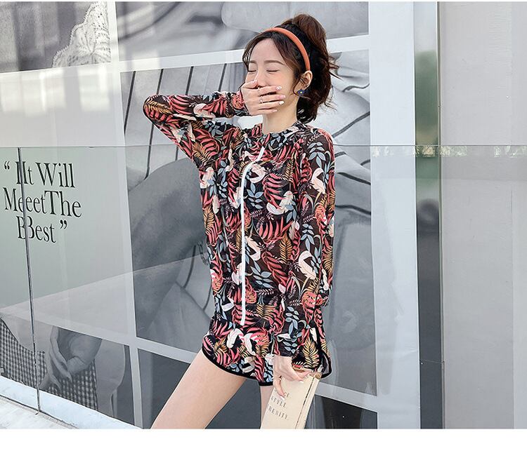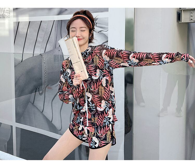 大人可愛いラッシュガード付きのボタニカル柄タンキニ水着。