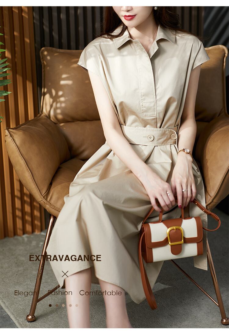 着心地のよいコットン素材のシャツワンピース。