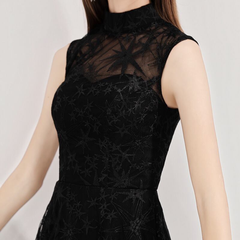 大人可愛い星モチーフの透かし柄パーティードレス。