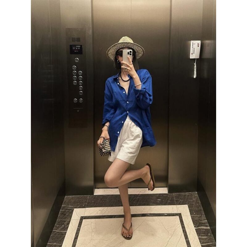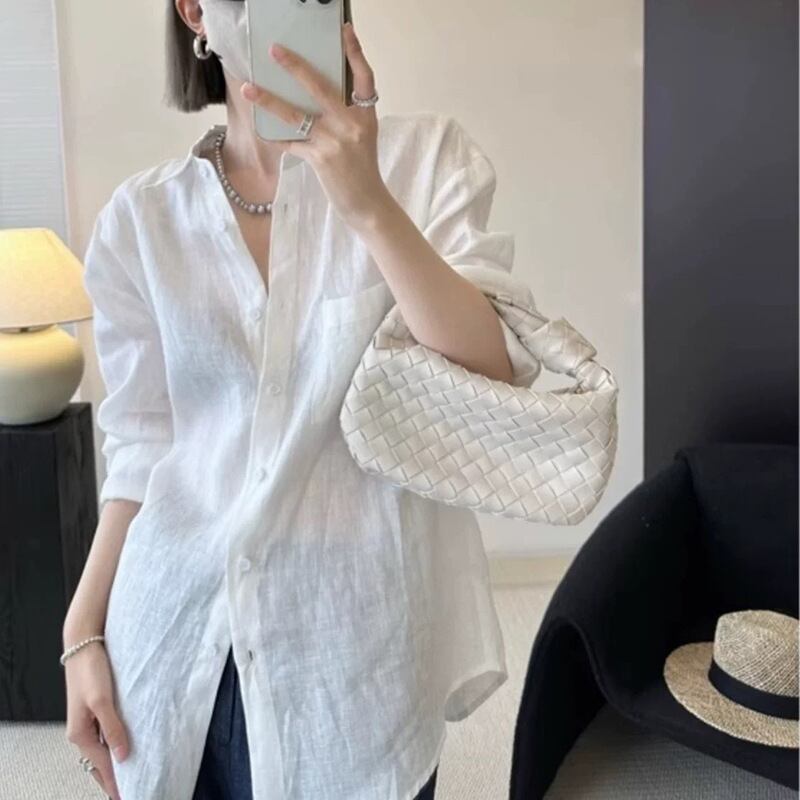 【シャツ】大きいサイズ レディース おしゃれ 長袖 ブラウス トップス シャツ 20代 30代 40代 春 夏 秋 カジュアル 可愛い きれいめ シンプル ネイビー 青 ホワイト 白