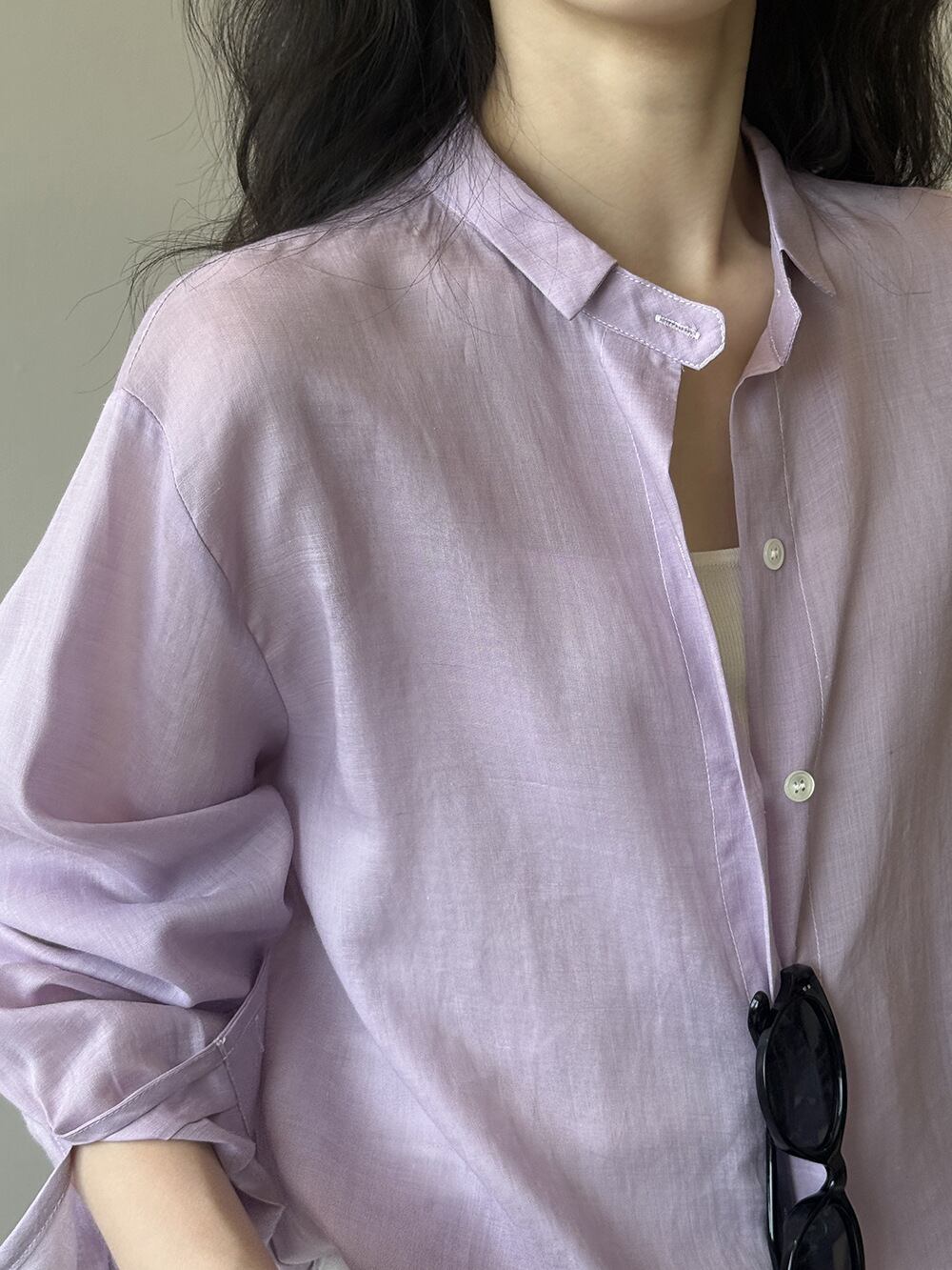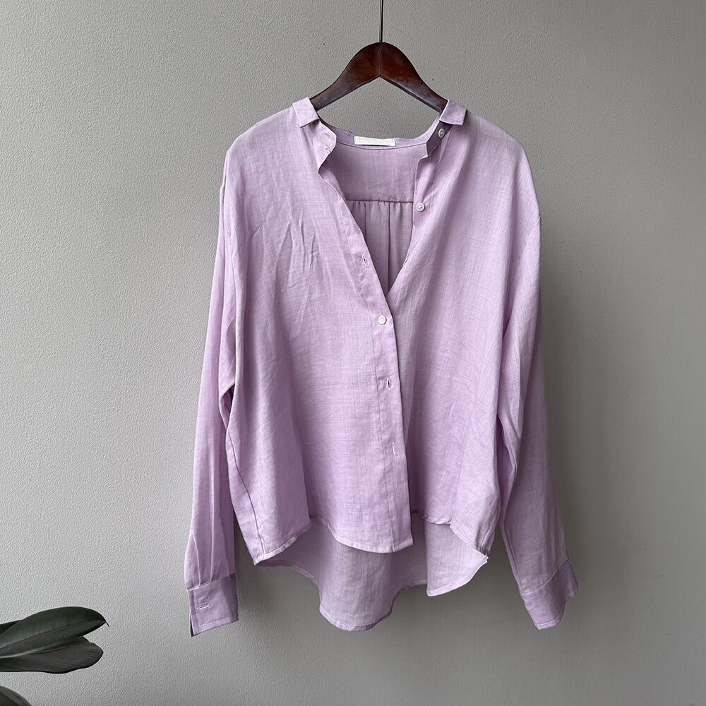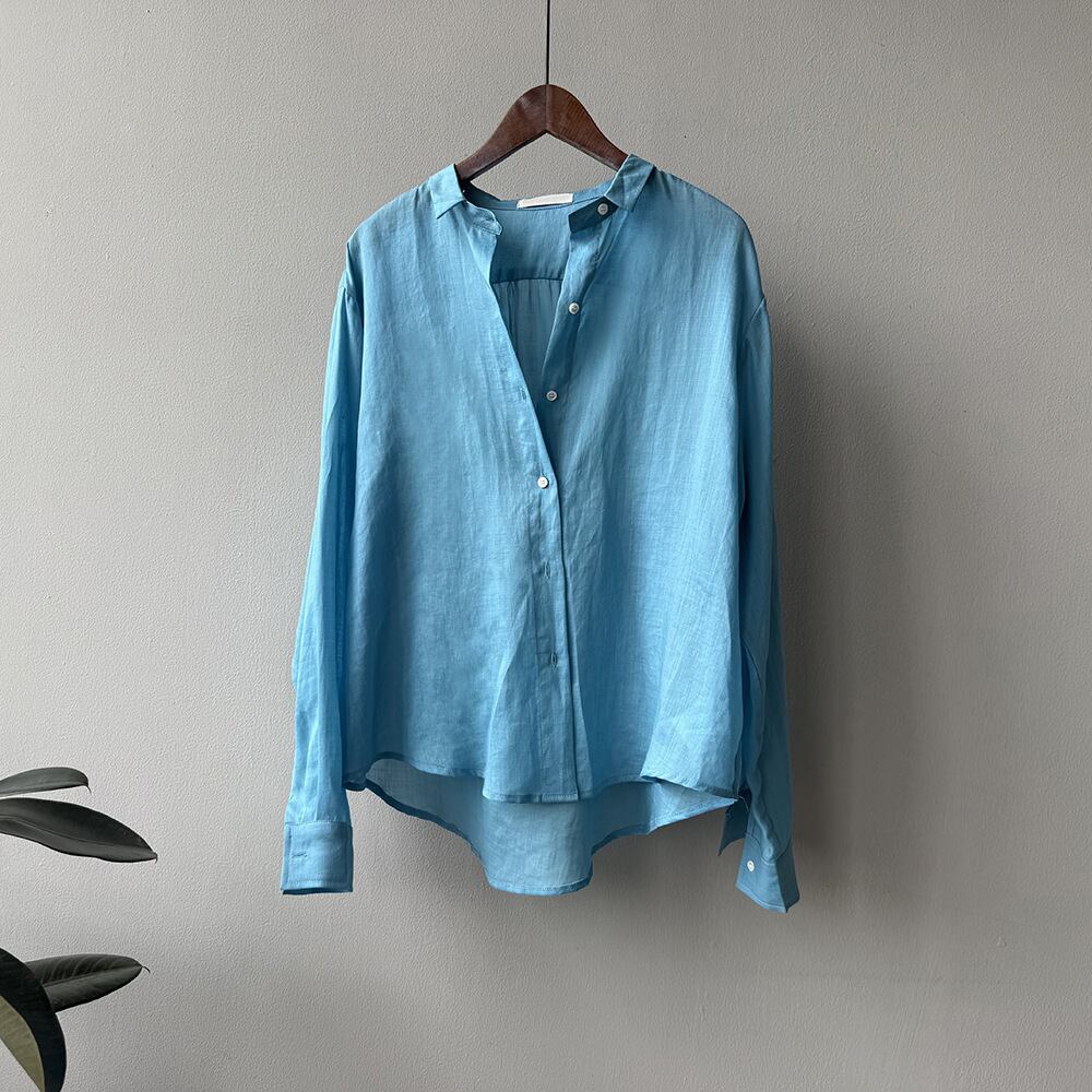 大人可愛いリネン混素材のシンプルシャツ。