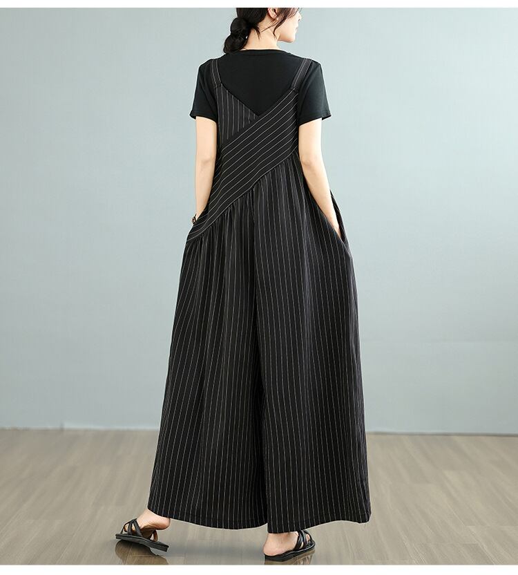 大人可愛いオーバーサイズのストライプ柄サロペット。