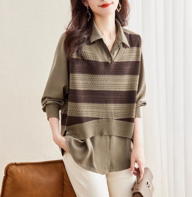 大人っぽく着こなせるボーダーのドッキングニットセーター。