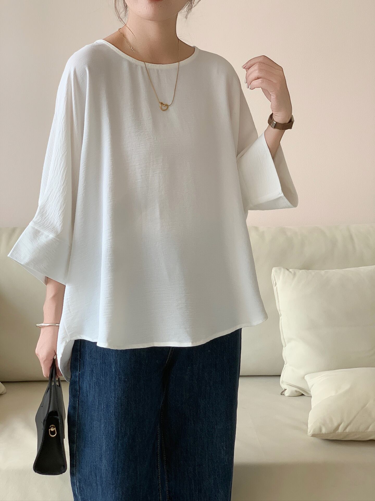 なめらかな手触りの大人可愛いチュニックシャツ。