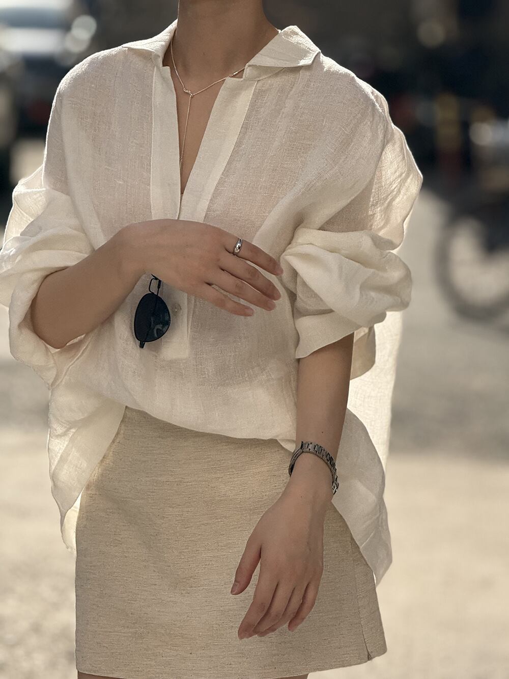 大人カジュアルなオーバーサイズのシンプルシャツ。