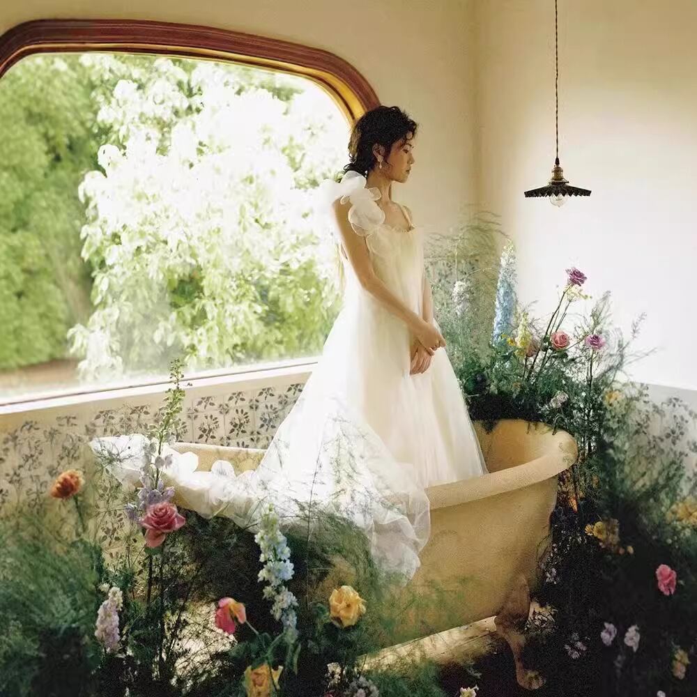 まるでネグリジェのような天使のようなウェディングドレス。