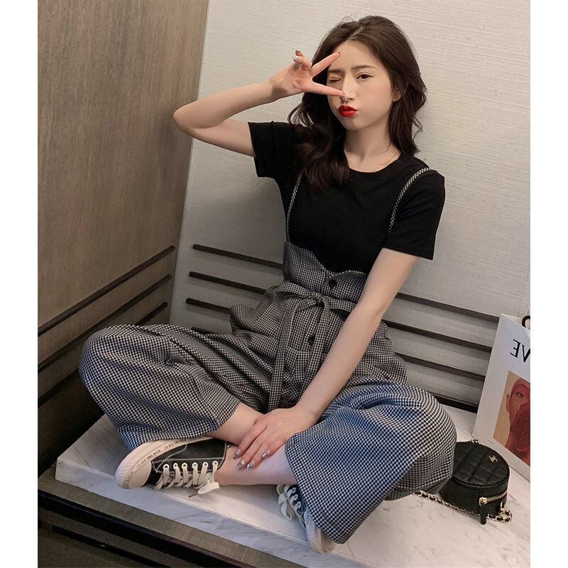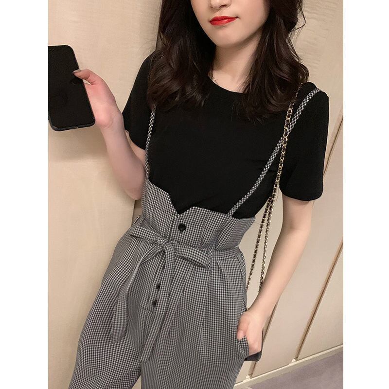 【セットアップ】 セットアップ レディース おしゃれ ママ サロペット カットソー トップス 春 夏 秋 20代 30代 40代 食事会 きれいめ セットアップ 千鳥格子 ブラック 黒 S M L XL