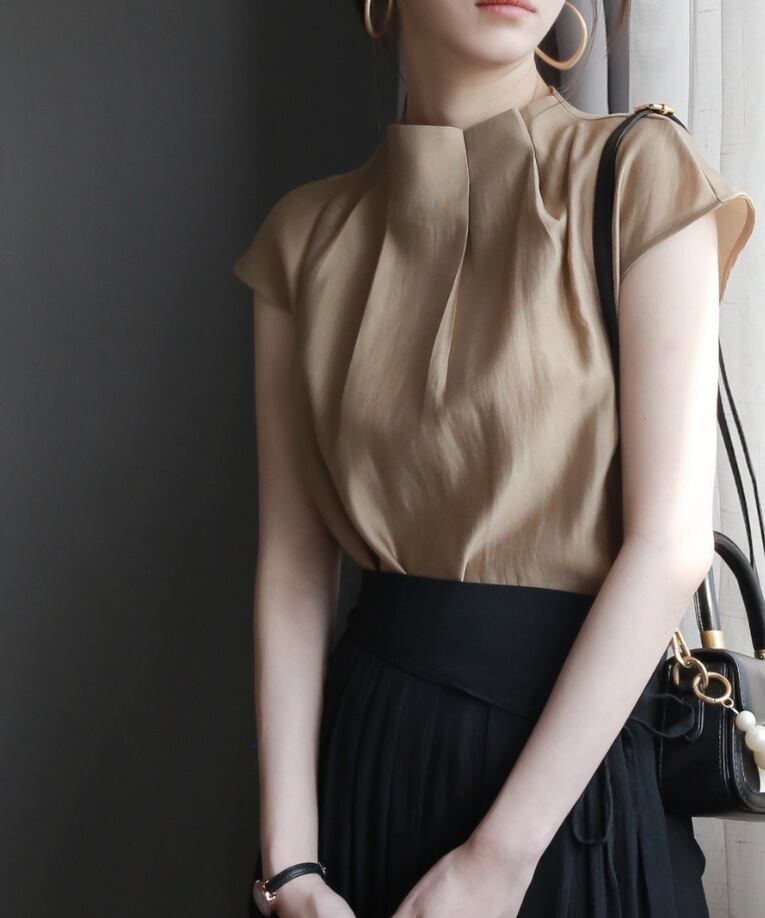 シックなカラーリングの大人エレガントなハイネックブラウス。
