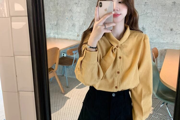 【ブラウス】 ブラウス レディース 大人 可愛い トップス シャツ ブラウス 韓国 ブラウス 春 秋 冬 20代 30代 40代 シンプル オフィス レディース フォーマル 体型カバー きれいめ 長袖 コーデュロイ ベージュ イエロー S M