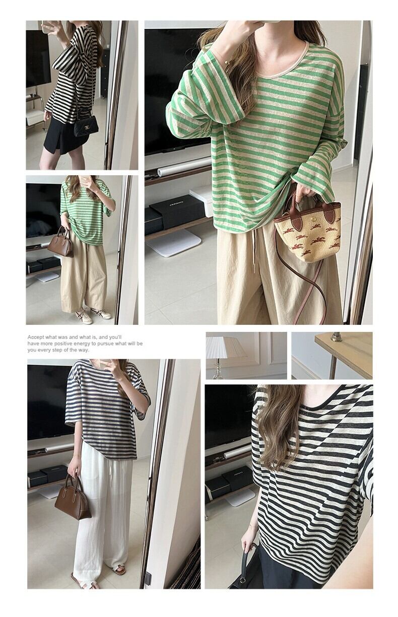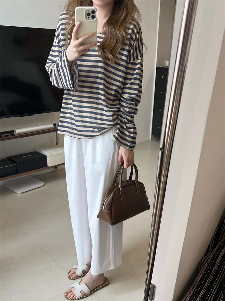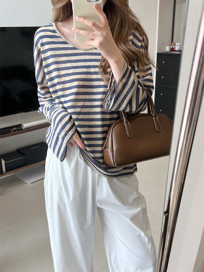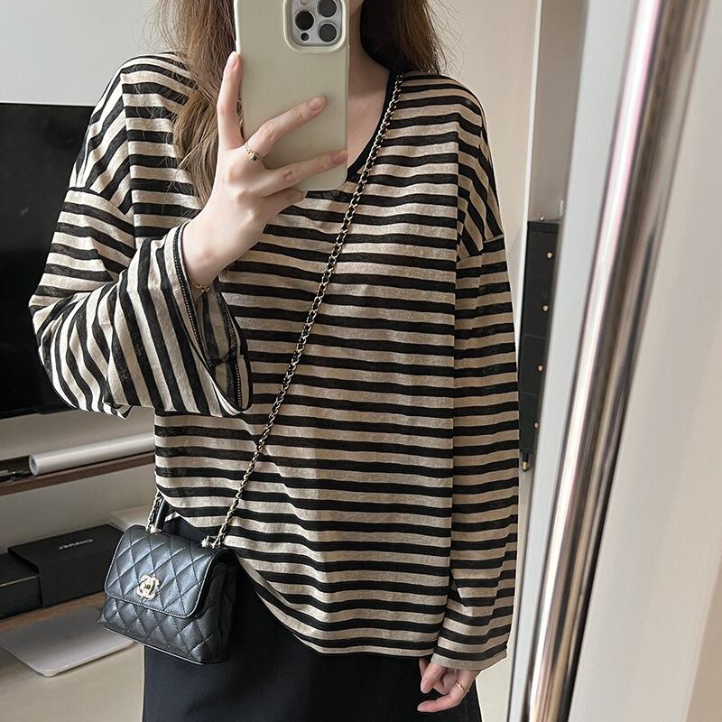 大人カジュアルな薄手のボーダーカットソー。