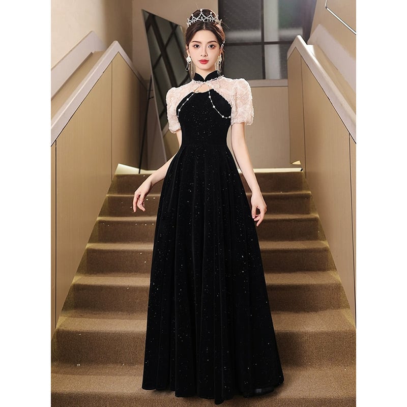大人エレガントなバイカラーのチャイナ風パーティードレス。