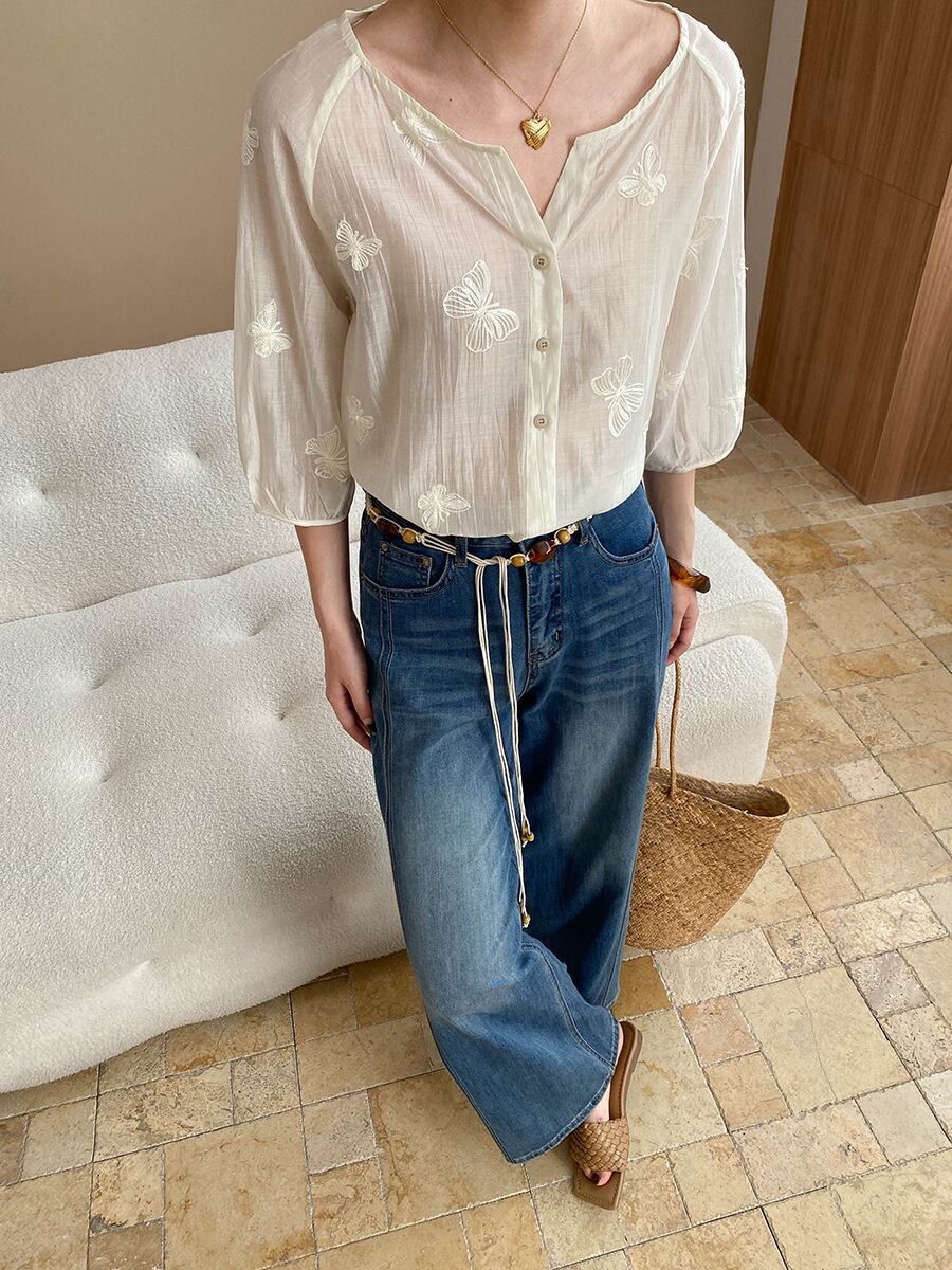 足まわりゆったりウエストまわりはすっきりでスタイルアップ効果。