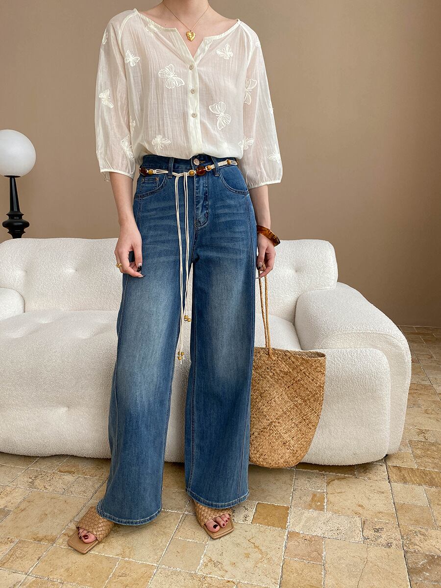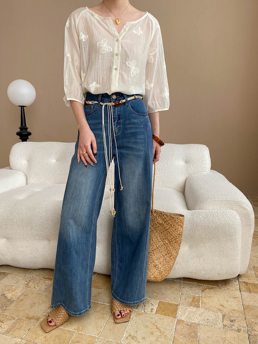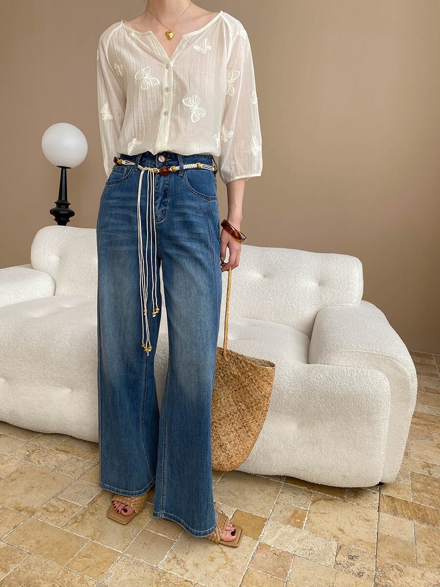 大人カジュアルでシンプルなデニムパンツ。