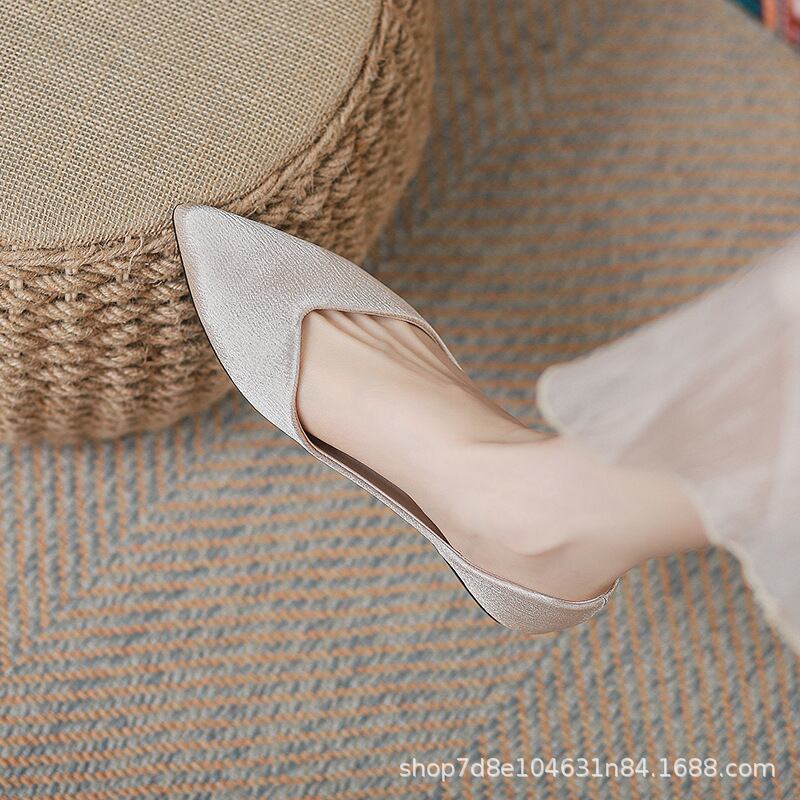 大人エレガントなローヒールのポインテッドトゥパンプス。
