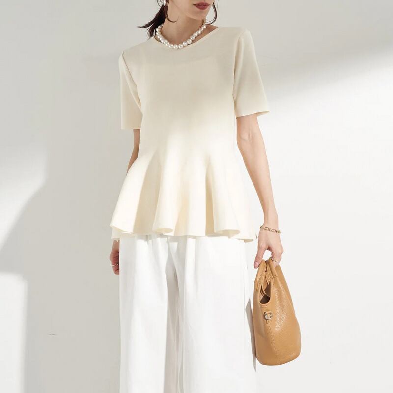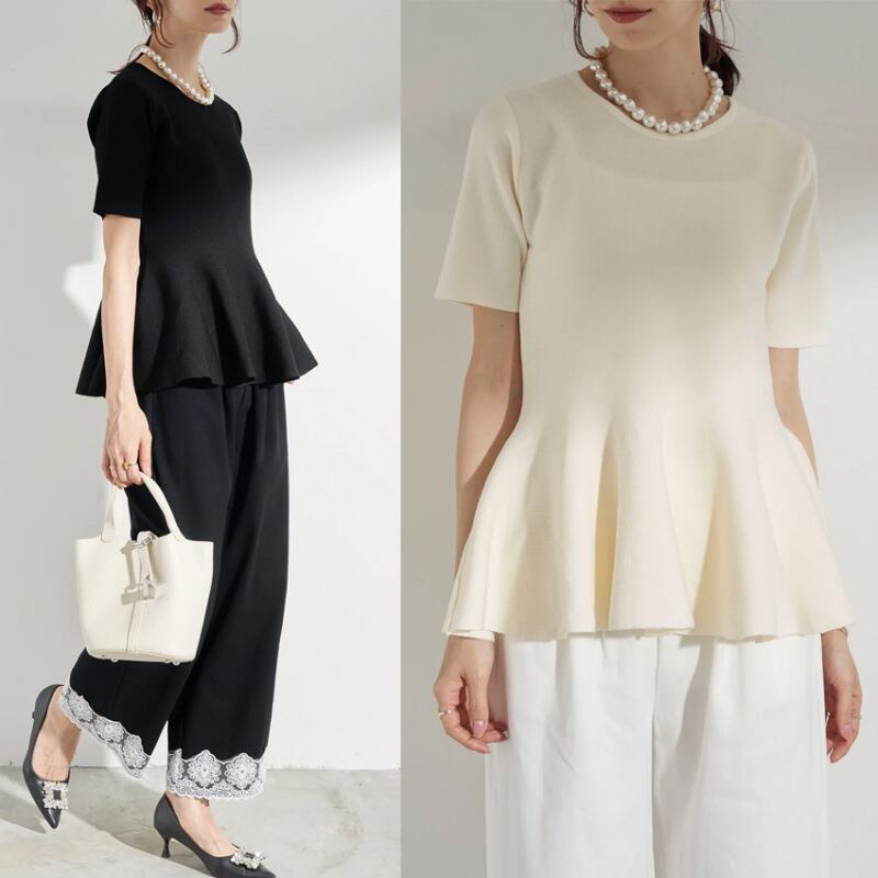 【カットソー】半袖 レディース おしゃれ カットソー 春 夏 秋 tシャツ カットソー 20代 30代 40代 トップス 大人 可愛い きれいめ ペプラム ホワイト 白 ブラック 黒