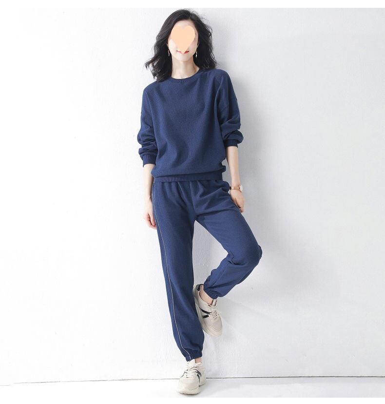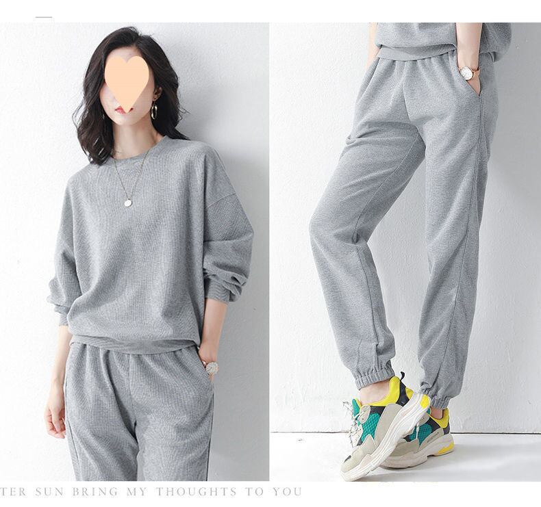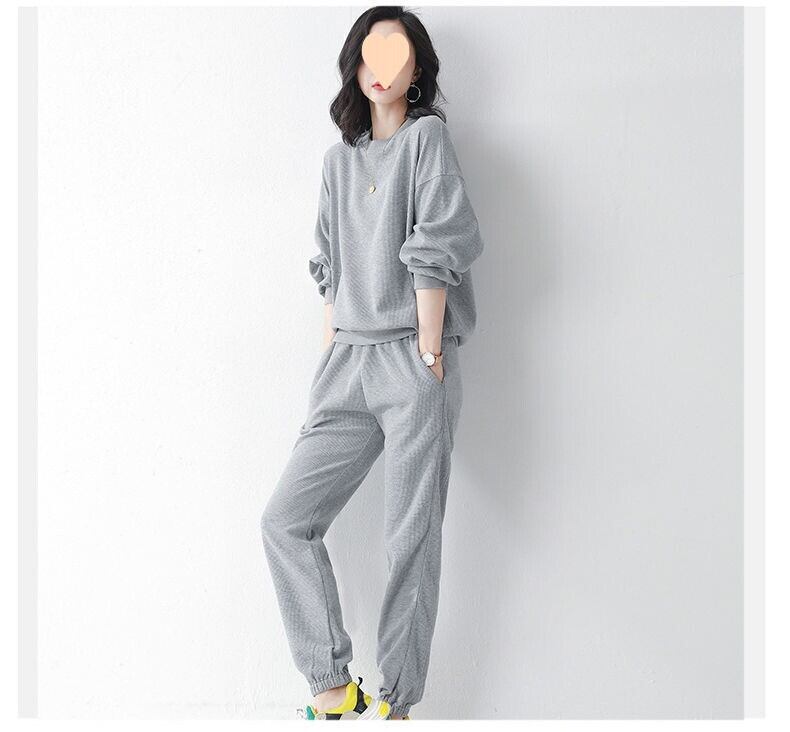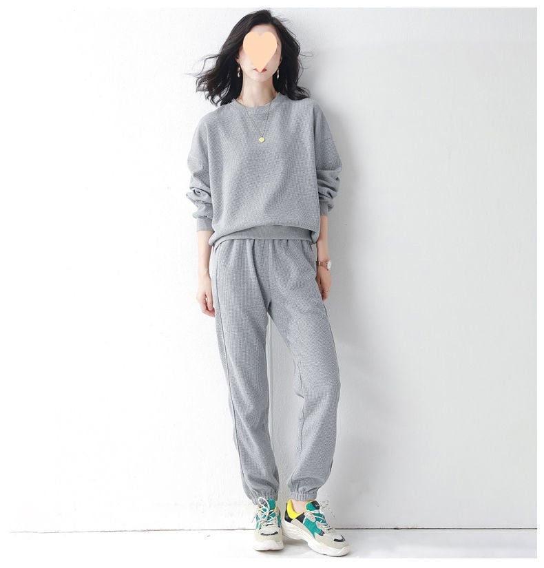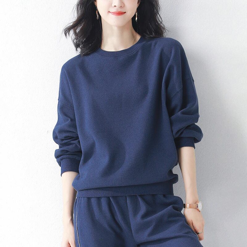 大人カジュアルなスウェットトップス+ジョガーパンツのセットアップ。