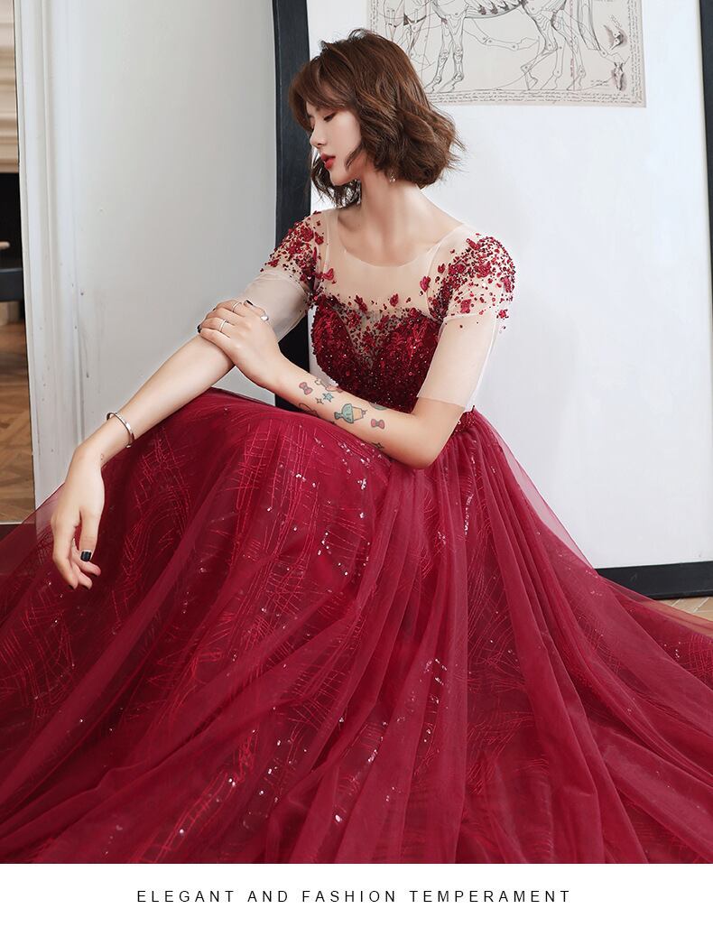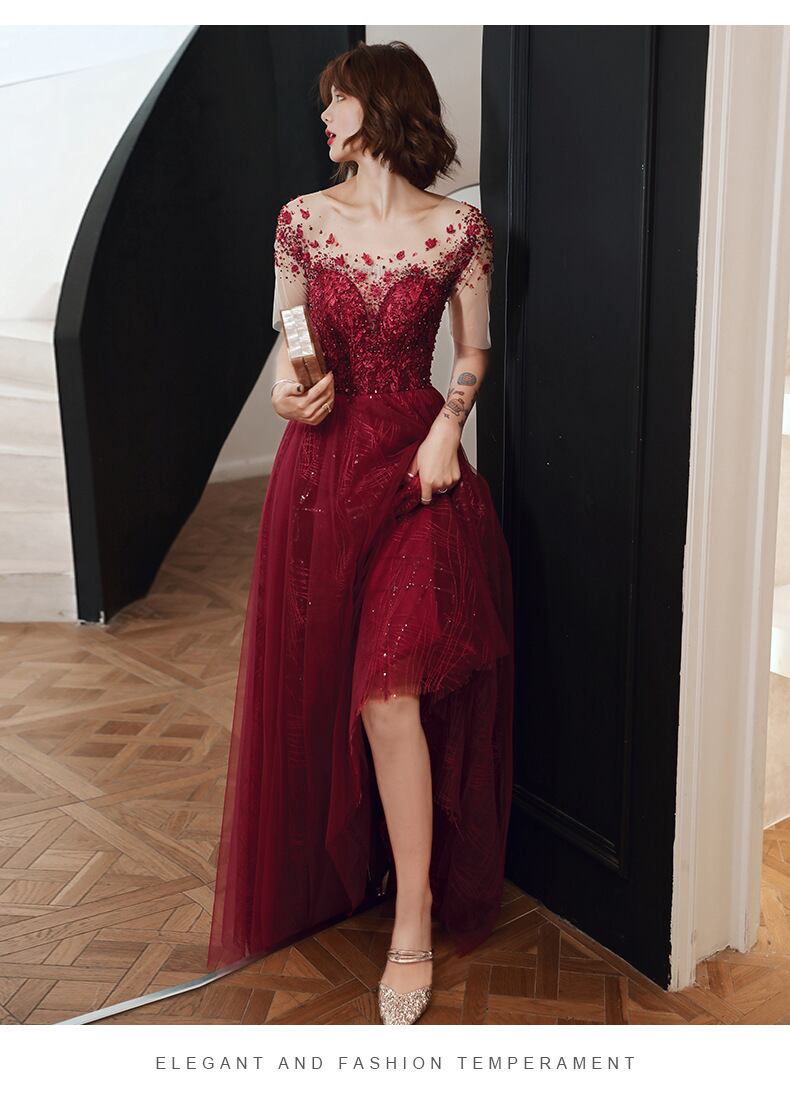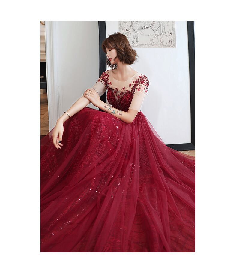 シースルーのお袖付きで気になる二の腕をナチュラルにカバー。