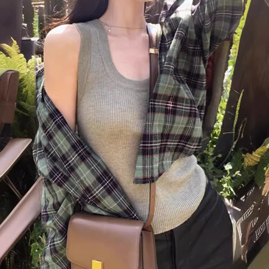 シックな深みあるグリーンカラーのチェック柄シャツ。