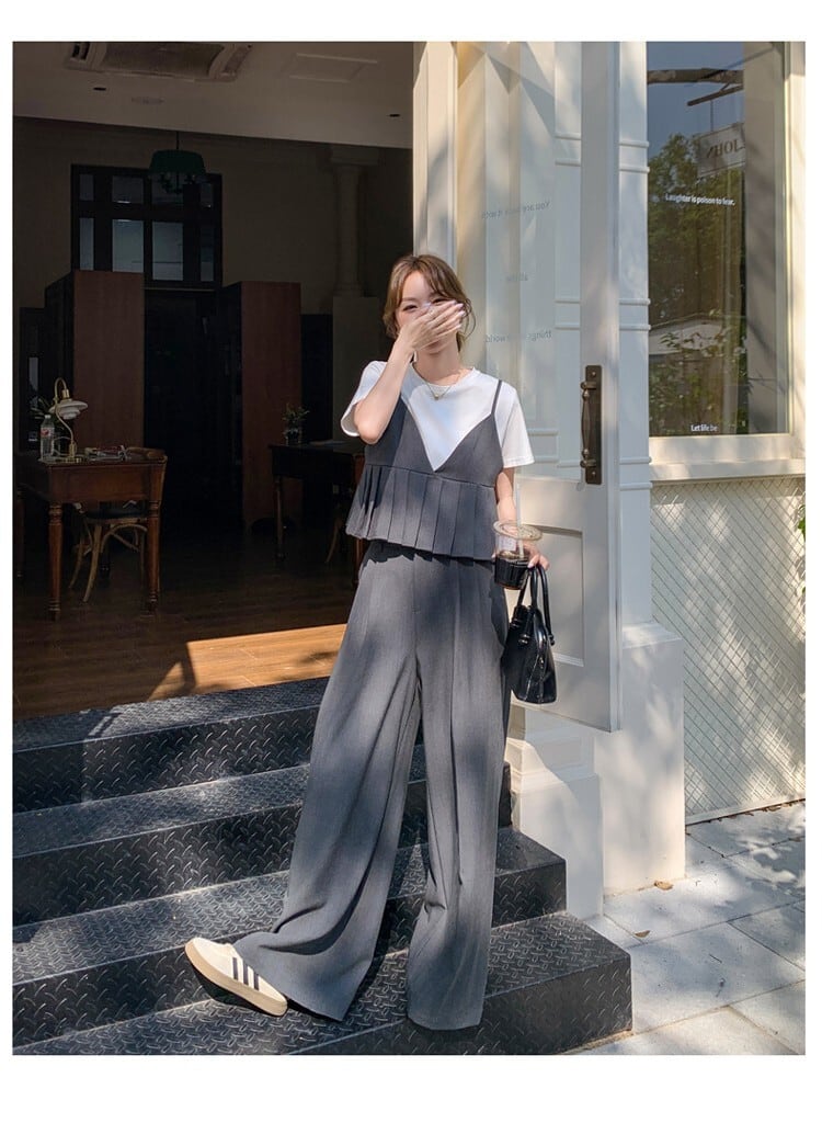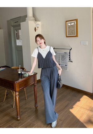 【セットアップ】 セットアップ レディース おしゃれ ママ パンツ ベスト tシャツ トップス 春 夏 秋 冬 20代 30代 40代 きれいめ 母親 母 ママ 服装 3点セット グレー S M L XL
