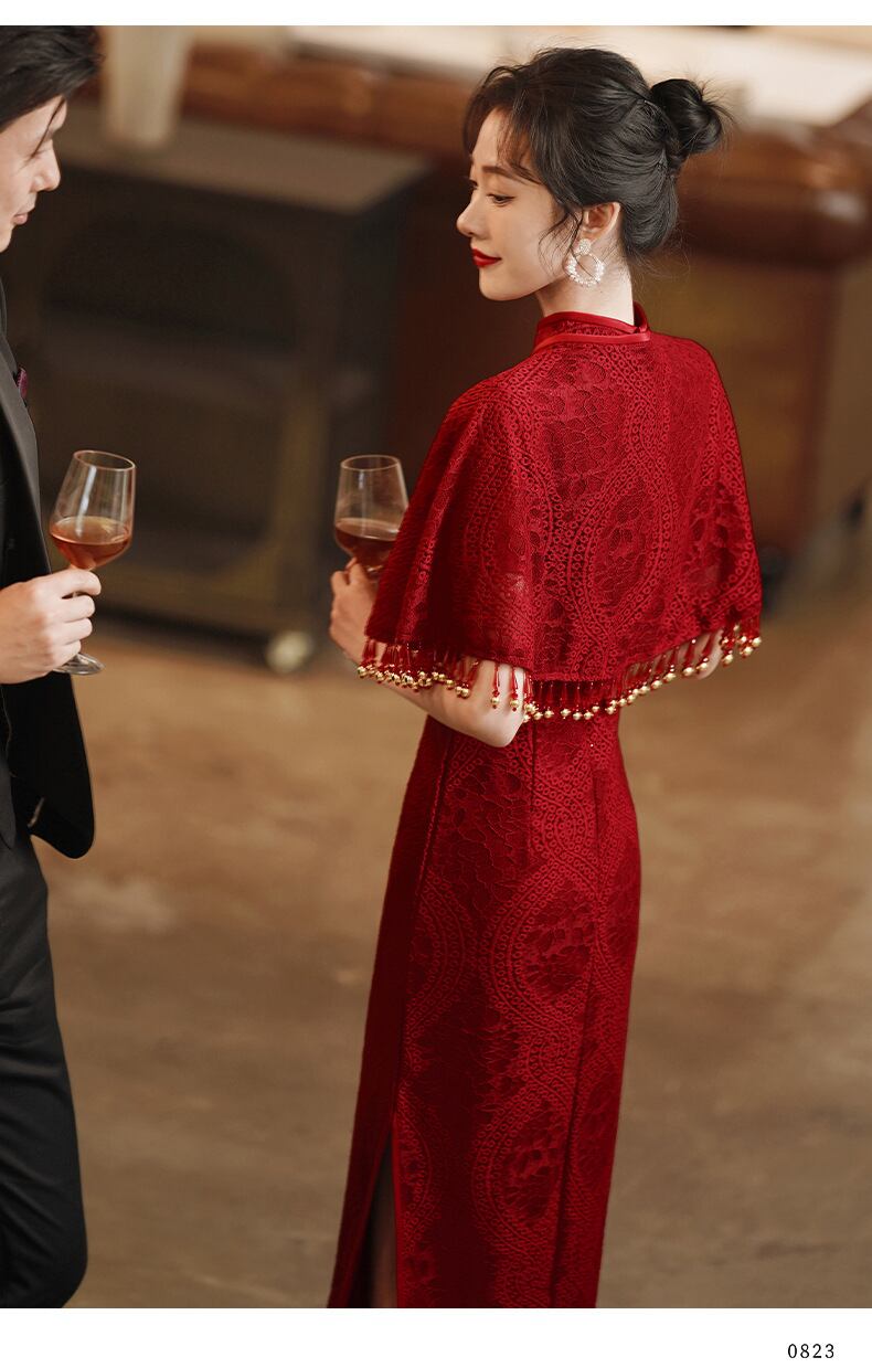 深紅のワインレッドカラーでパーティーシーンにぱっと映える。