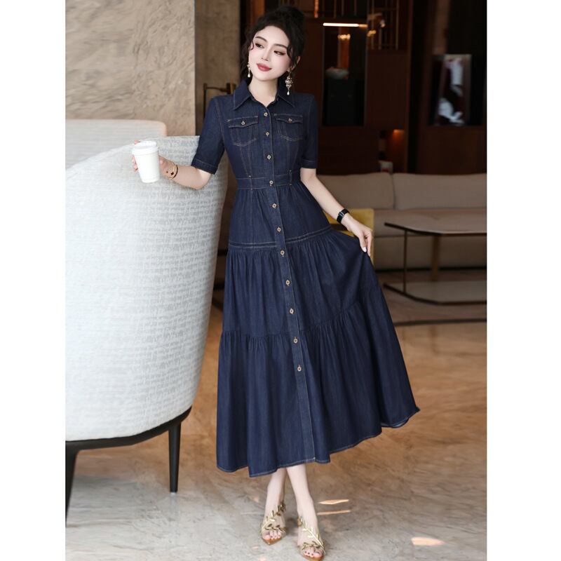 【ワンピース】大きいサイズ ワンピース レディース おしゃれ きれいめ 可愛い 春 夏 秋 ワンピース 20代 30代 40代 ロング ワンピース 春秋 袖あり 韓国 ワンピース ネイビー 青 S M L XL 2XL 3XL