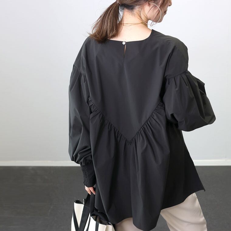 アシンメトリーなデザインの大人可愛いチュニックブラウス。